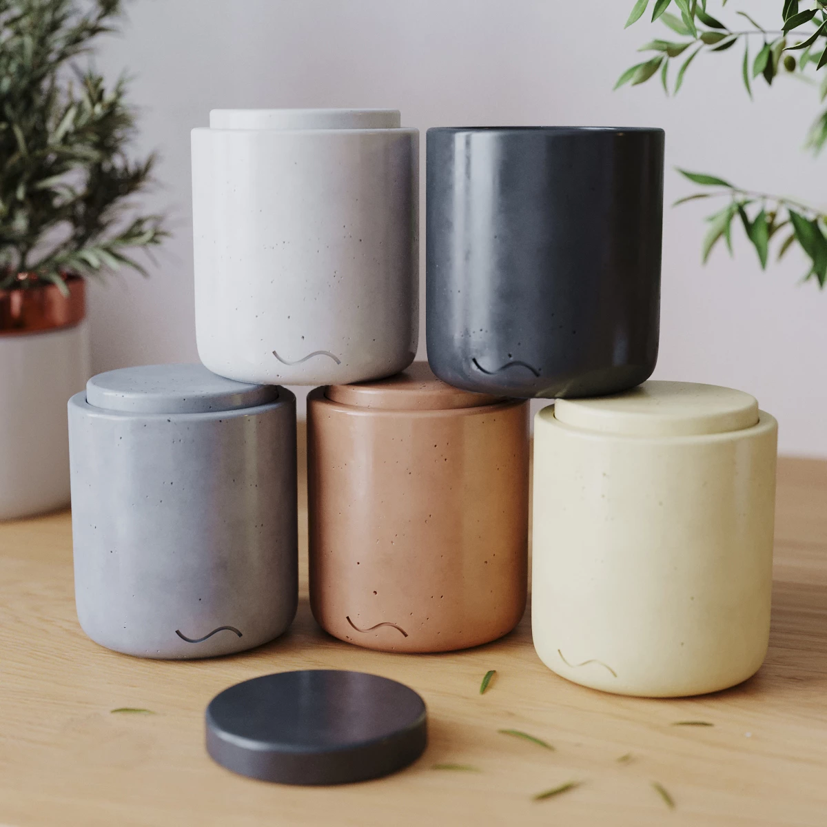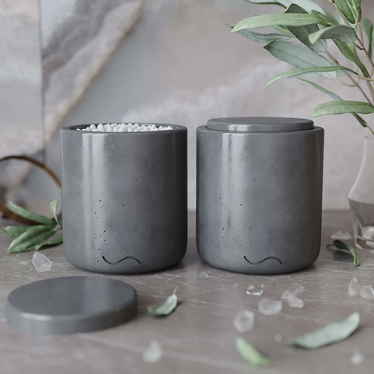 Набор из декоративных контейнеров для ванной Astrid S - это лаконичный и стильный интерьерный набор, изготовленный вручную из арт-бетона.