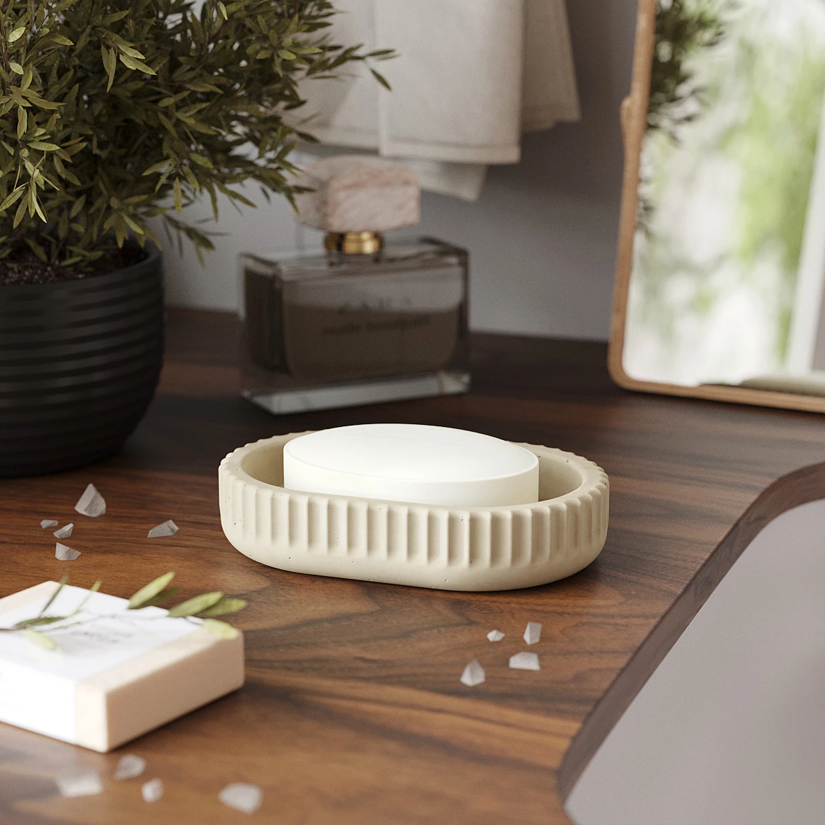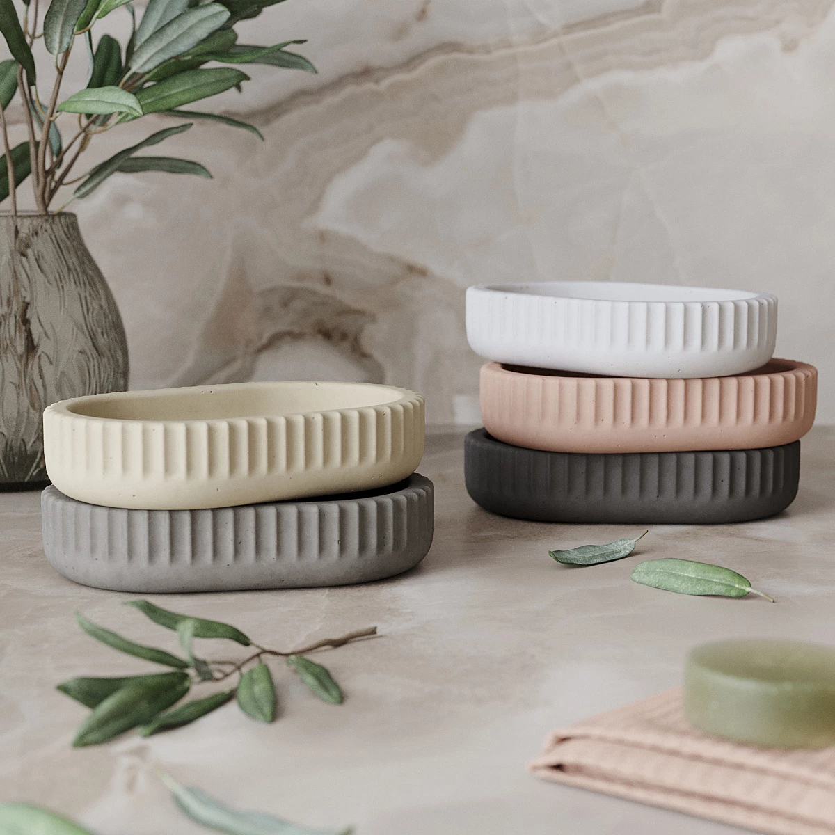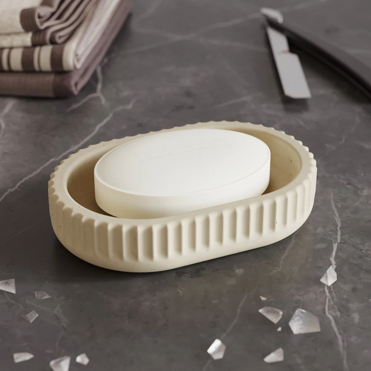 Мыльница Chloe изготовлена в сдержанном скандинавском стиле из декоративного бетона.