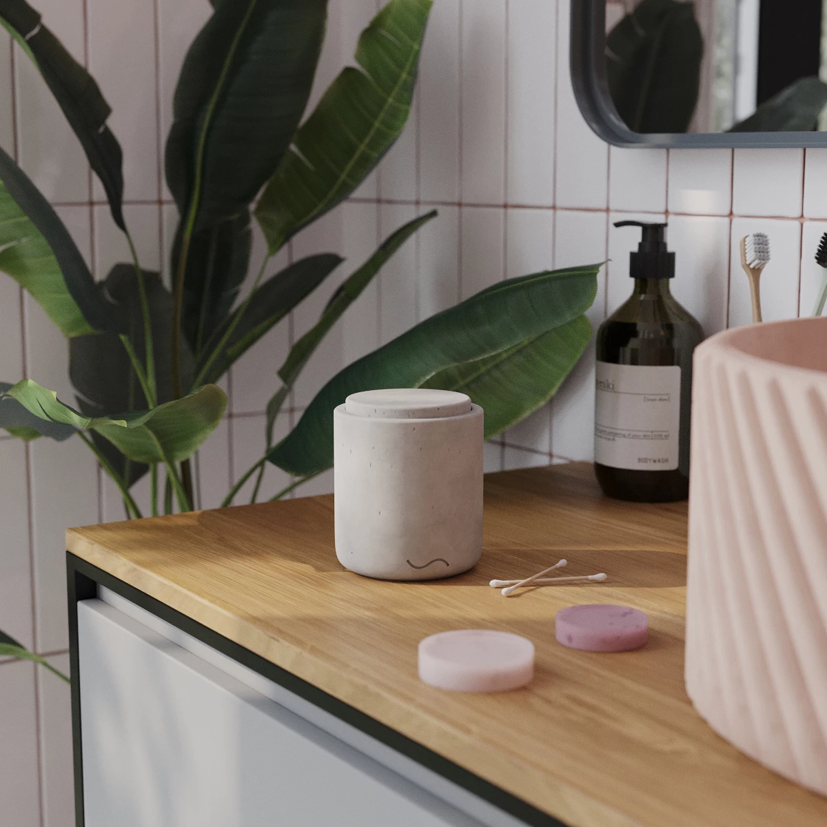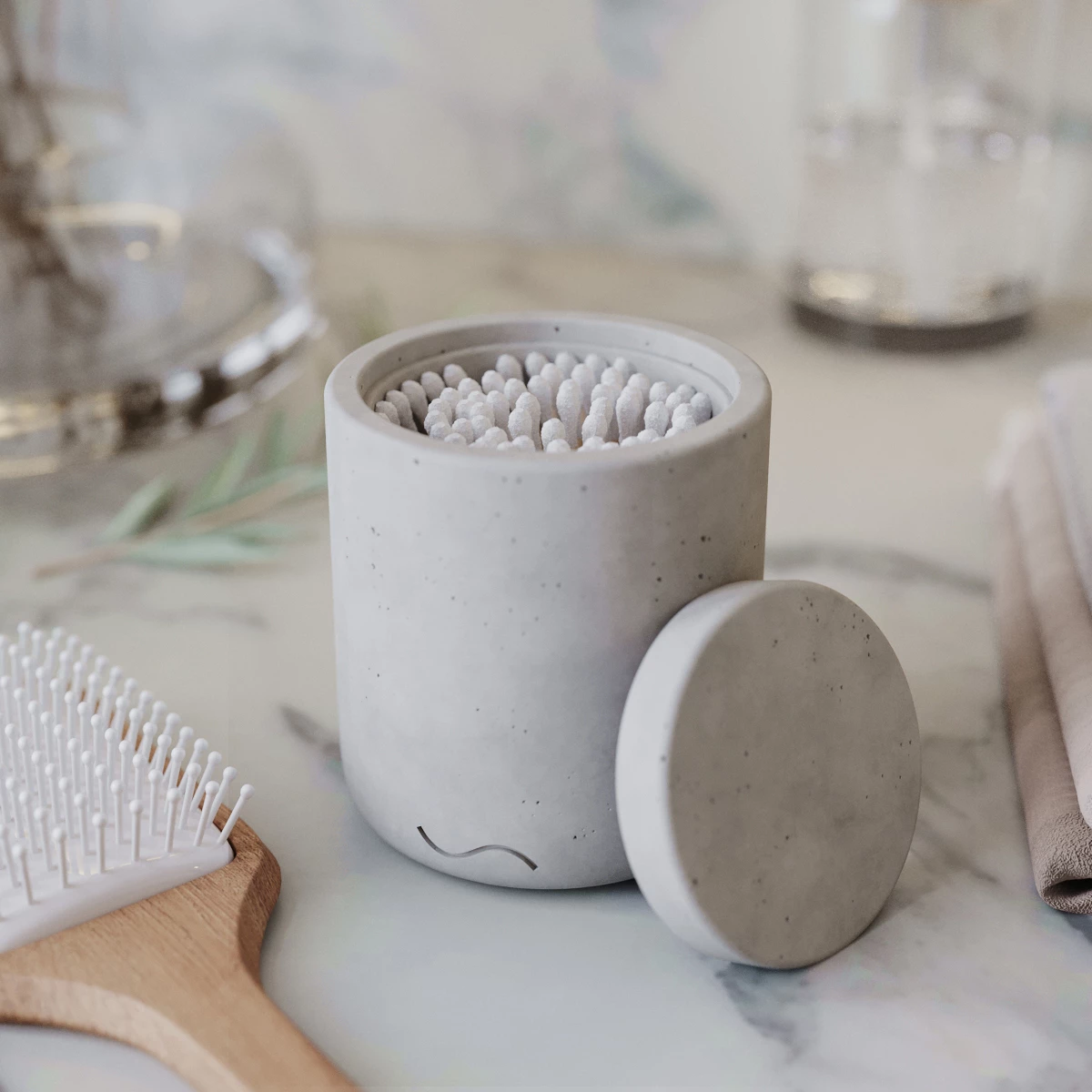 Декоративная подставка с крышкой Astrid для ватных палочек - это лаконичный и стильный интерьерный аксессуар, изготовленный вручную из архитектурного бетона.