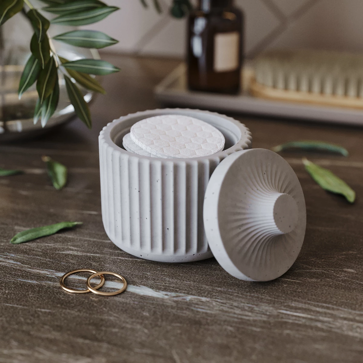 Декоративная подставка с крышкой Chloe XS для ватных дисков - это лаконичный и стильный интерьерный аксессуар, изготовленный вручную из архитектурного бетона.
