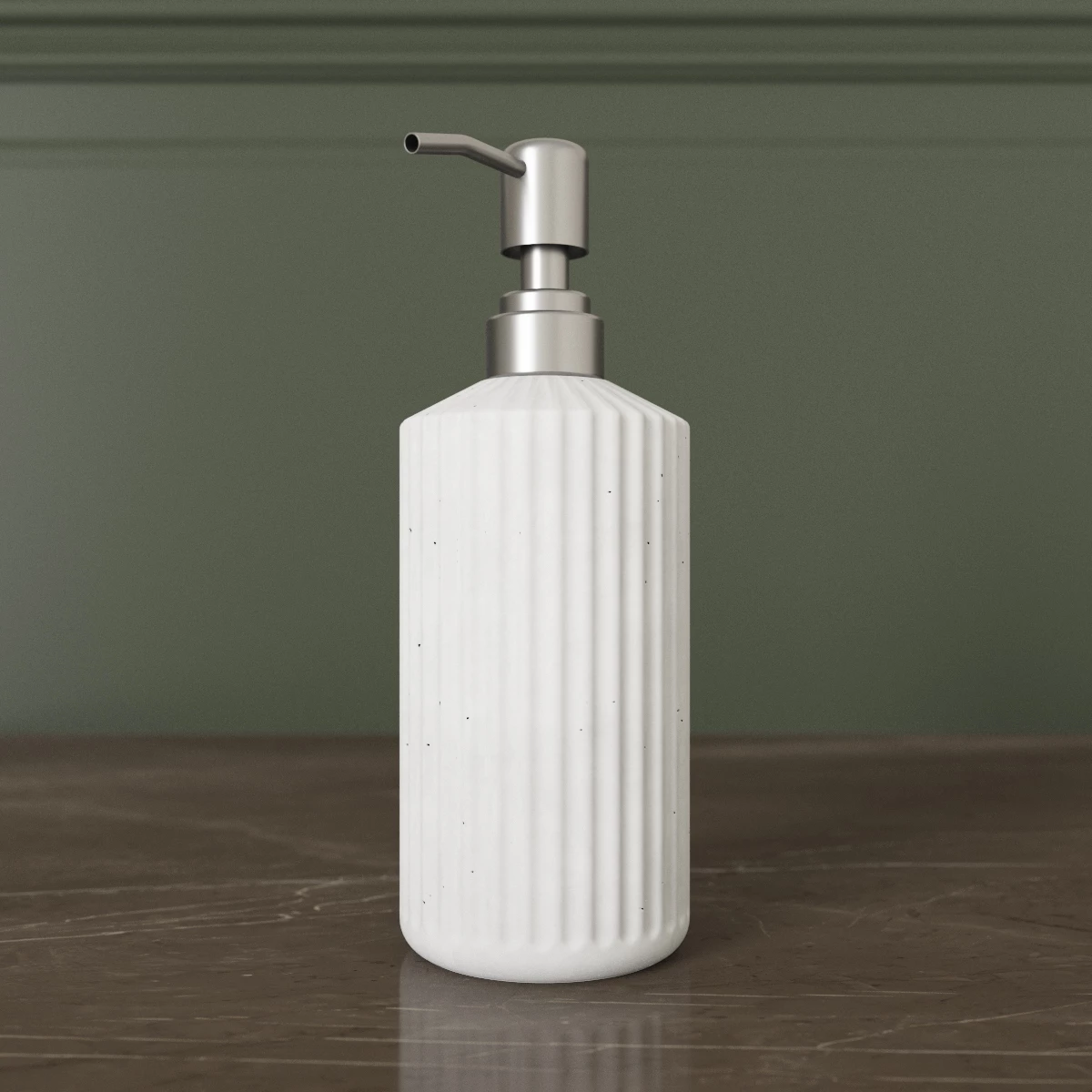 Дозатор Chloe Slim состоит из бетонного корпуса, внутрь которого помещена емкость из прочного пластика. Помпа дозатора сделала из металла. Дозатор имеет оптимальный объем 250 мл, которого будет достаточно для хранения жидкого мыла или шампуня.