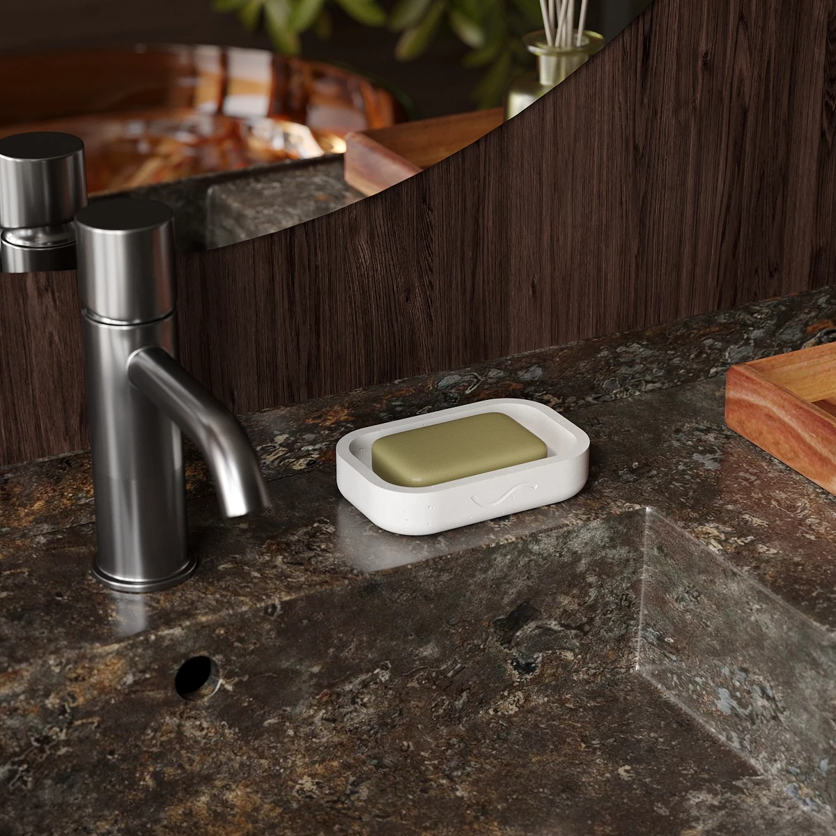 Мыльница Aura изготовлена в сдержанном скандинавском стиле из декоративного бетона.