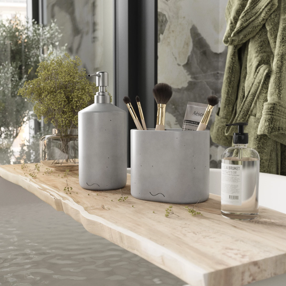 Такой набор может стать идеальным подарком. Минималистичный дизайн бетонных изделий позволяет им идеально вписаться в любой интерьер.