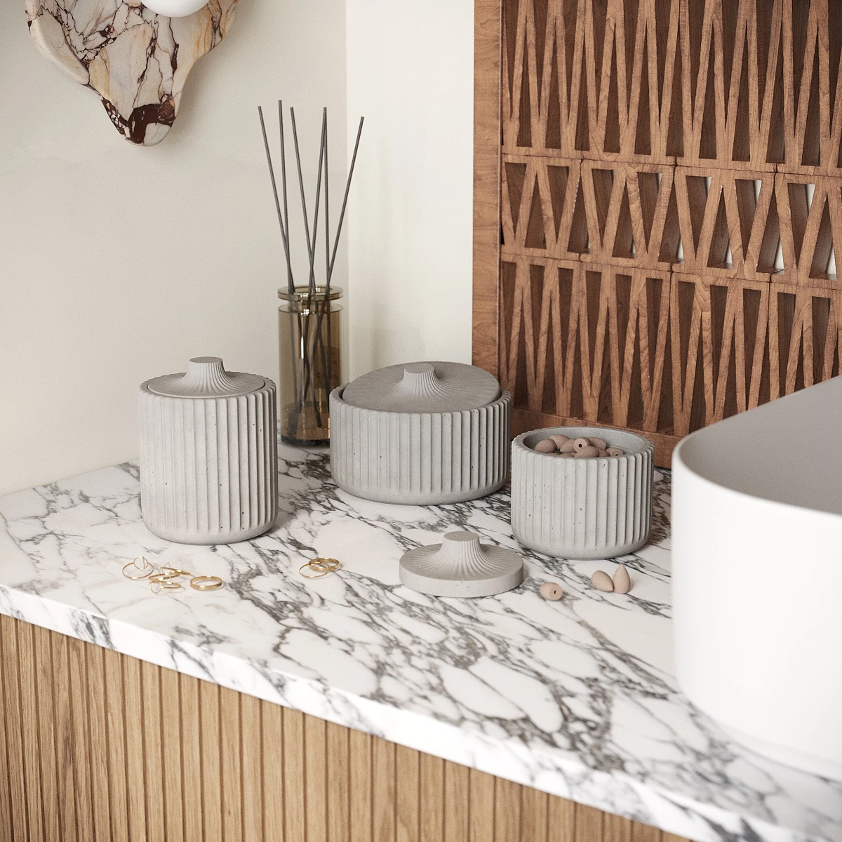 Набор для ванной Chloe 10 от MUSKO Home из бетона станет отличным украшением или чудесным подарком, который наполнит дом уютом и красотой.