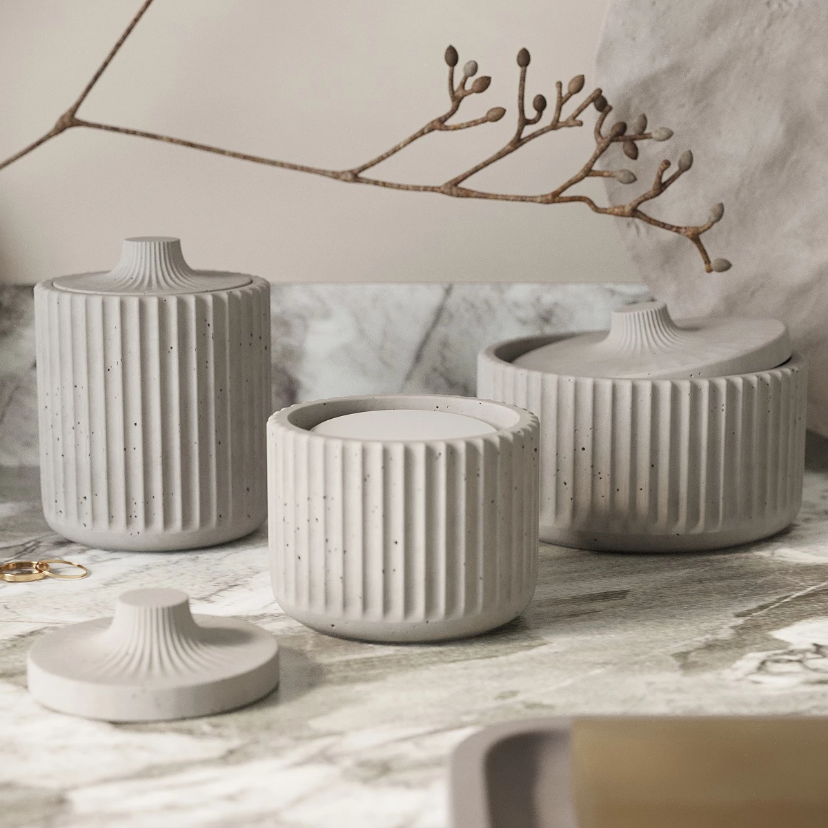 ◇ Декоративный контейнер с крышкой Chloe M - это лаконичный и стильный интерьерный аксессуар, изготовленный вручную из архитектурного бетона. Контейнер идеально подойдёт для хранения ватных дисков или мелочей для ванной.