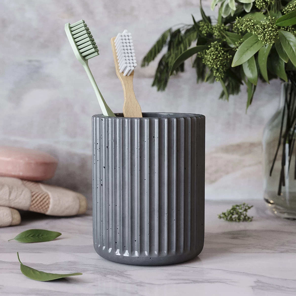 Декоративный стакан для зубных щёток Chloe - это лаконичный и стильный интерьерный аксессуар, изготовленный вручную из архитектурного бетона.