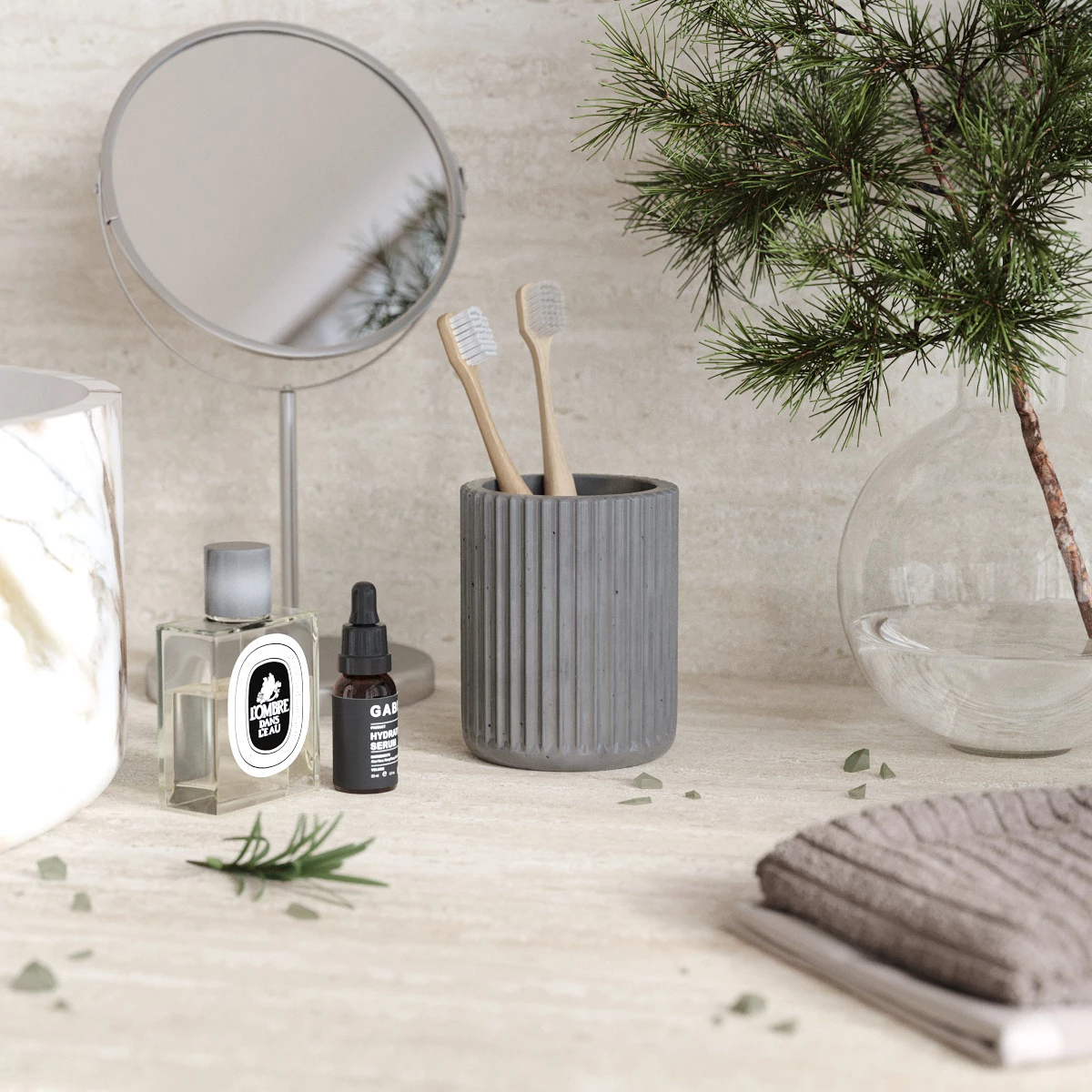 Декоративный стакан для зубных щёток Chloe — это лаконичный и стильный интерьерный аксессуар, изготовленный вручную из архитектурного бетона.