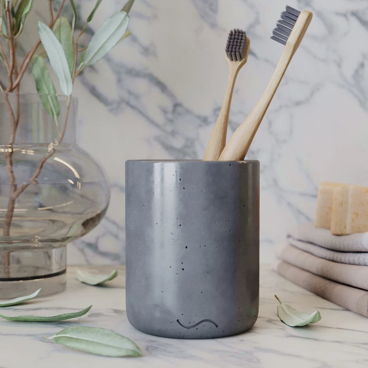 Декоративный стакан для зубных щёток Astrid - это лаконичный и стильный интерьерный аксессуар, изготовленный вручную из архитектурного бетона.