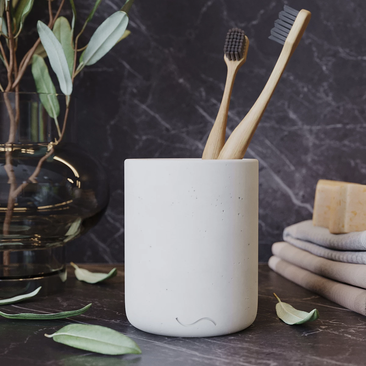 Декоративный стакан для зубных щёток Astrid - это лаконичный и стильный интерьерный аксессуар, изготовленный вручную из архитектурного бетона.