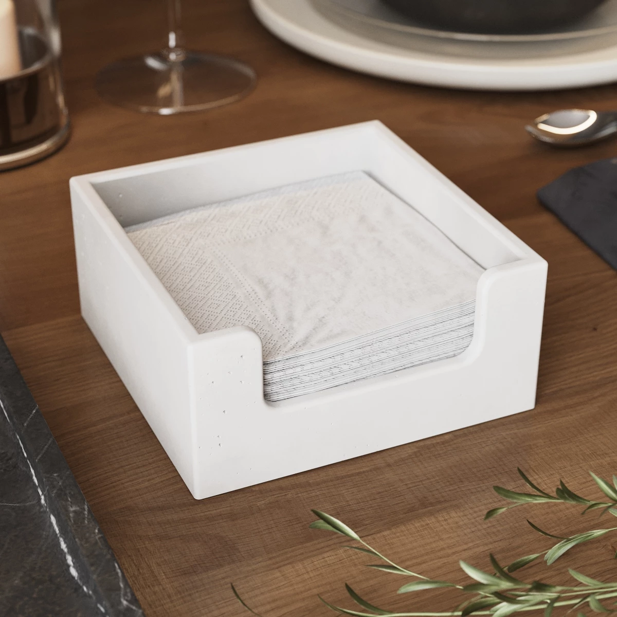 Интерьерная салфетница прямоугольной формы, изготовленная вручную из декоративного бетона. Благодаря благодаря особенностям материала каждое изделие имеет свою собственную неповторимую фактуру.