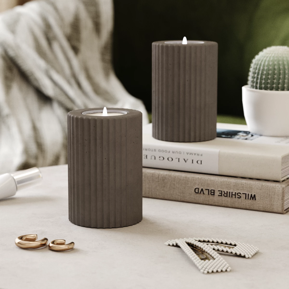 Комплект лаконичных подсвечников из бетона - это экологичный и безопасный аксессуар, который идеально впишется в любой интерьер и привнесёт с собой в Ваш дом частицу скандинавского уюта. Подсвечники отлично подойдут не только для создания домашней атмосферы, но и для других помещений (бара, ресторана или кафе).