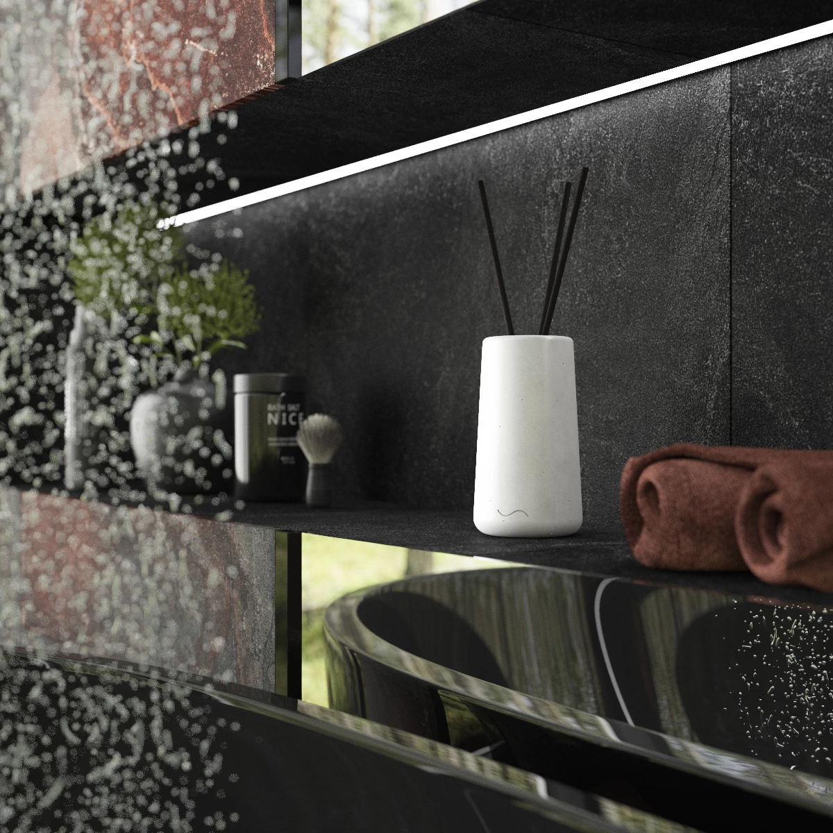 Ароматический диффузор для дома в бетонной вазе - изысканный и функциональный предмет декора. Флакон-рефил легко помещается внутрь бетонной подставки, которая станет украшением любого интерьера, наполняя помещение (будь то ванная, гостиная или спальня) приятным ароматом и создавая особую атмосферу.