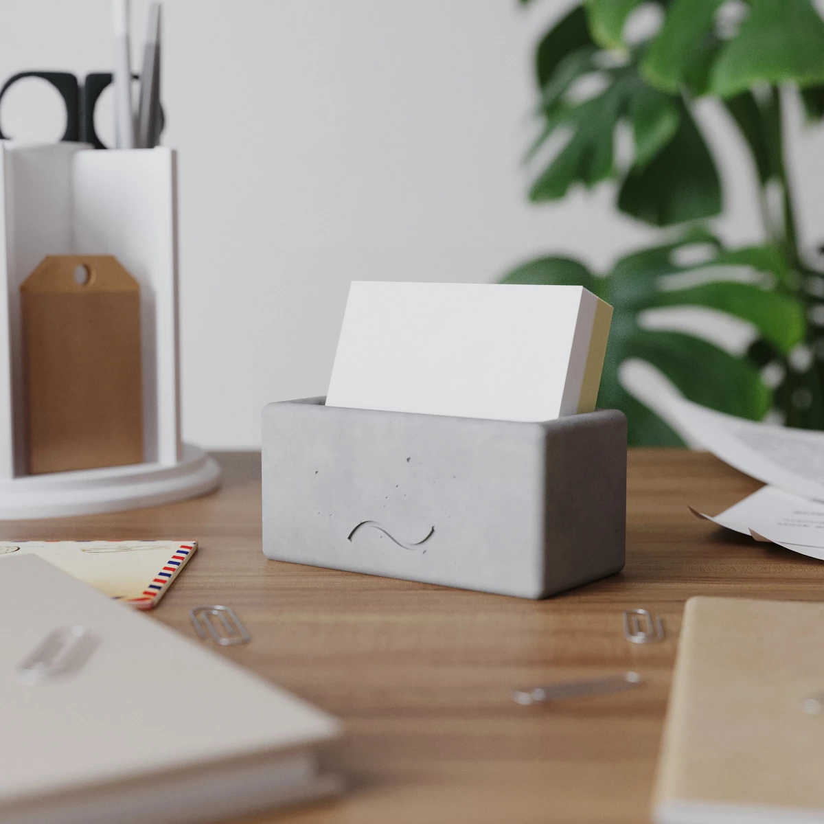 Emily S - это матовая лаконичная офисная подставка, изготовленная вручную из особо прочного архитектурного бетона. Удивляет функциональность предмета. Emily является идеальной подставкой для визиток, стандартных блоков для записей и может вместить большое количество мелочей, таких как скрепки, записки, скобы.