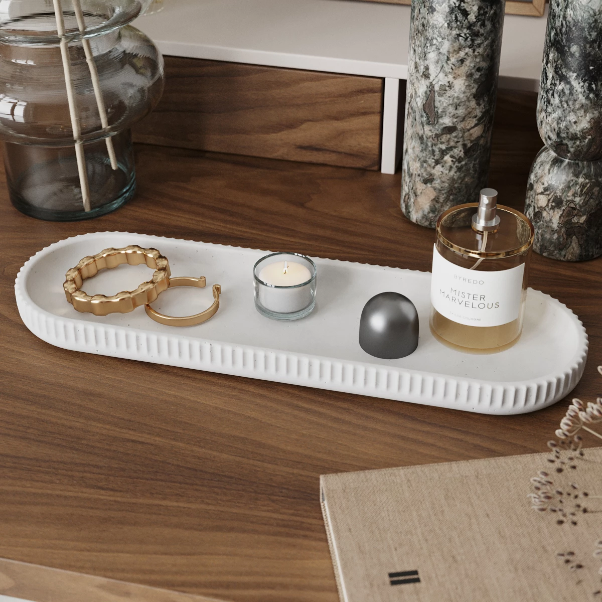 Chloe M - универсальный интерьерный поднос, изготовленный вручную из особо прочного бетона.