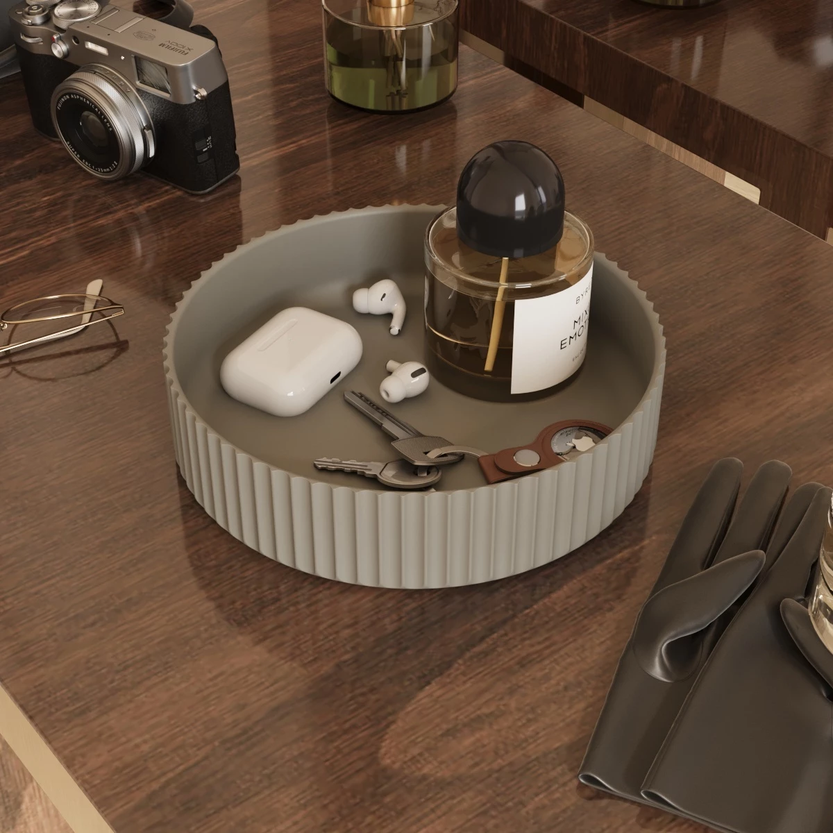 Поднос можно также разместить в прихожей как подставку для ключей, парфюма или наушников.