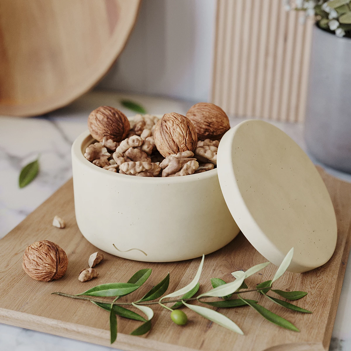 Astrid M - декоративная емкость с крышкой для хранения сыпучих продуктов, изготовленная вручную из особо прочного бетона.