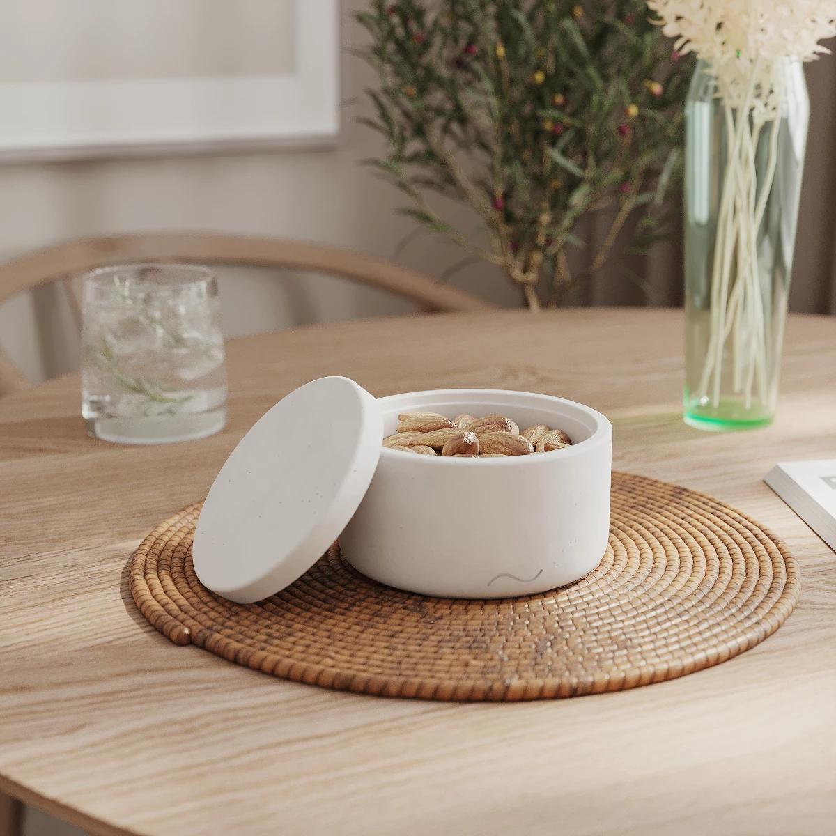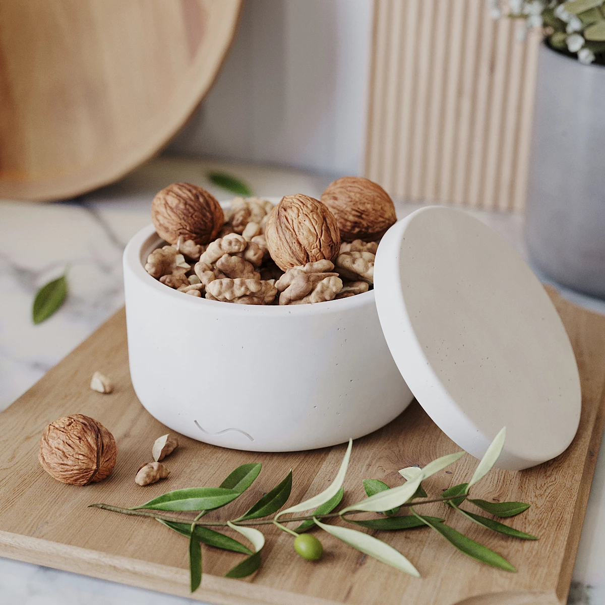 Astrid M - декоративная емкость с крышкой для хранения сыпучих продуктов, изготовленная вручную из особо прочного бетона.