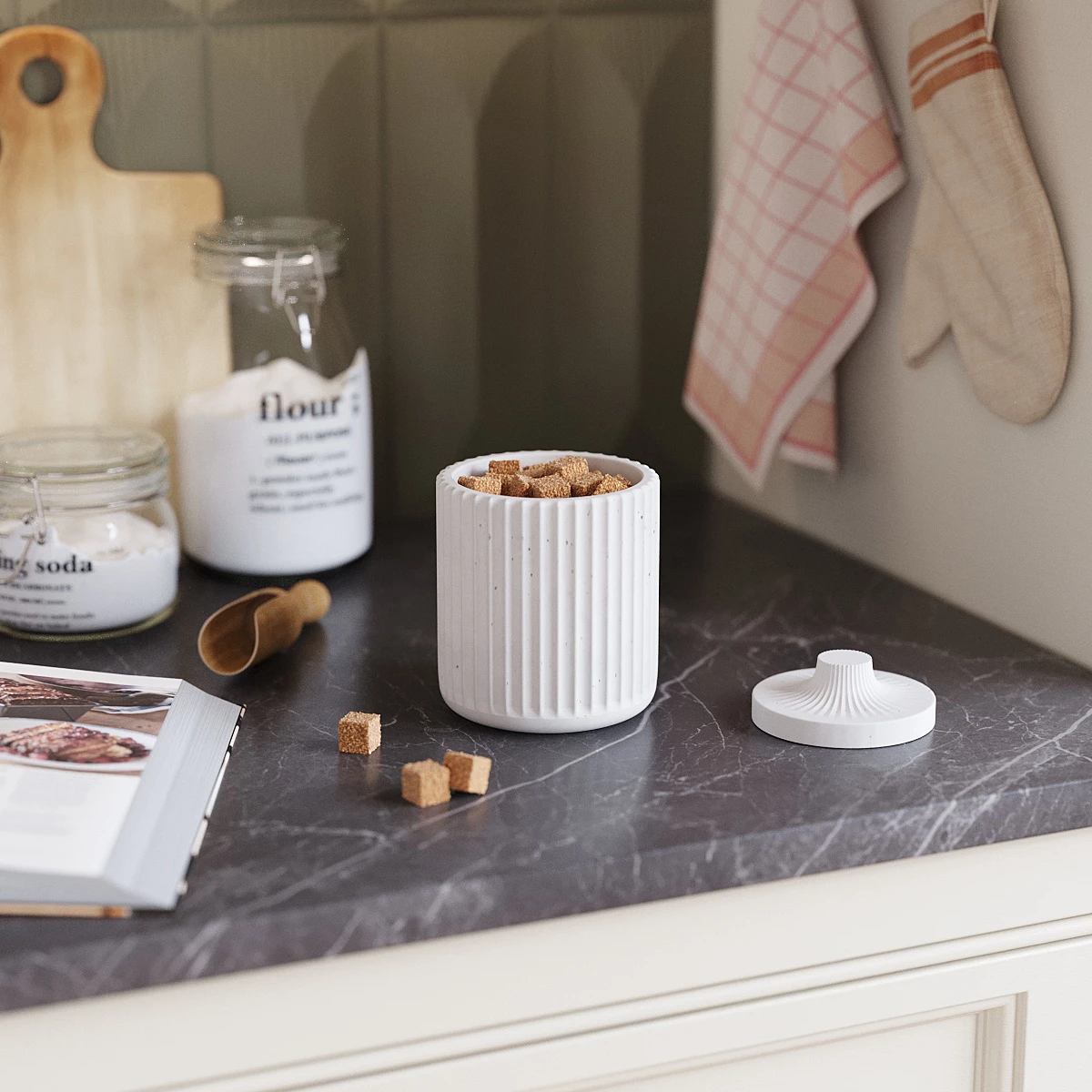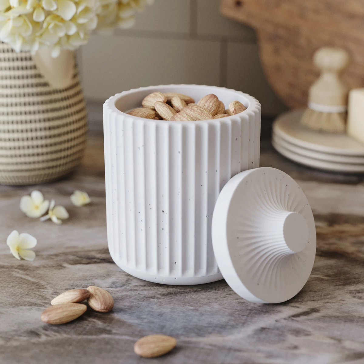Chloe S - декоративная емкость с крышкой для хранения сыпучих продуктов, изготовленная вручную из особо прочного бетона.