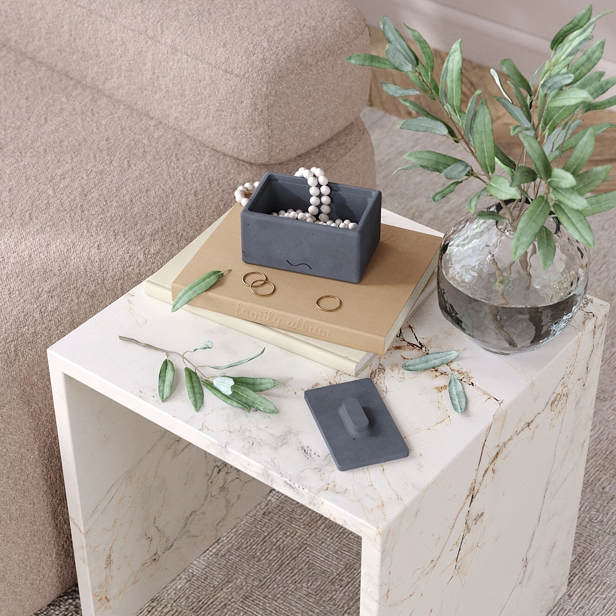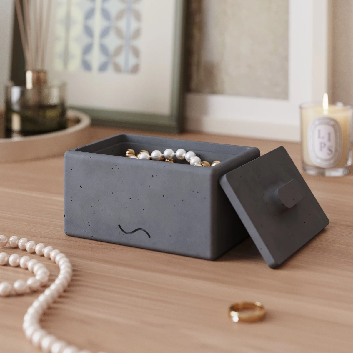 Emily - декоративная шкатулка для украшений, изготовленная вручную из особо прочного бетона.