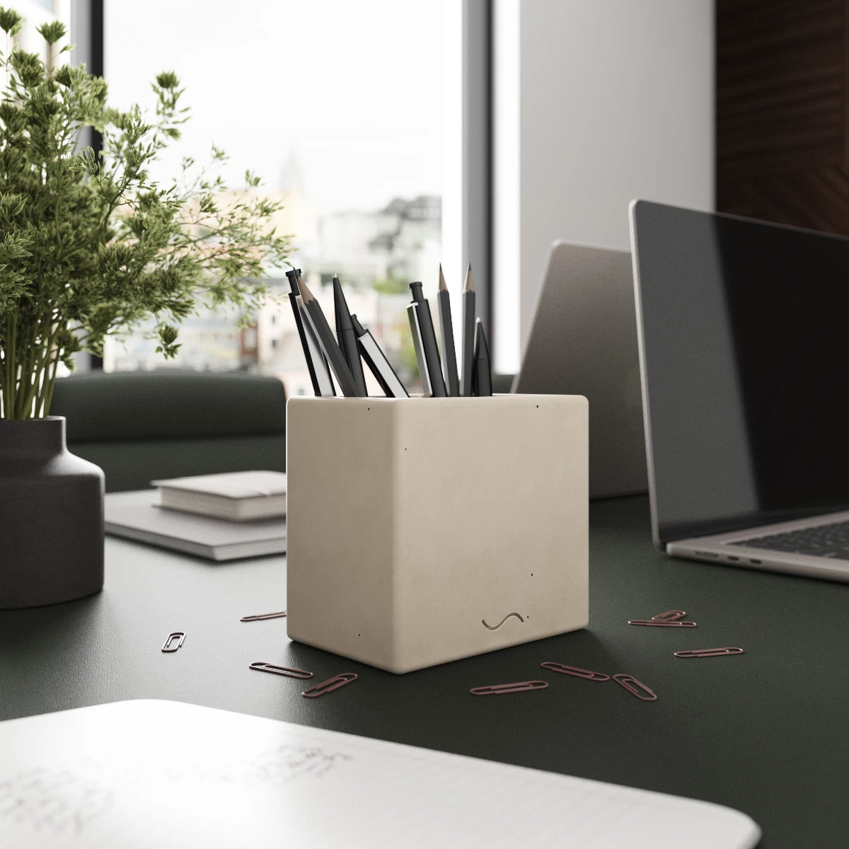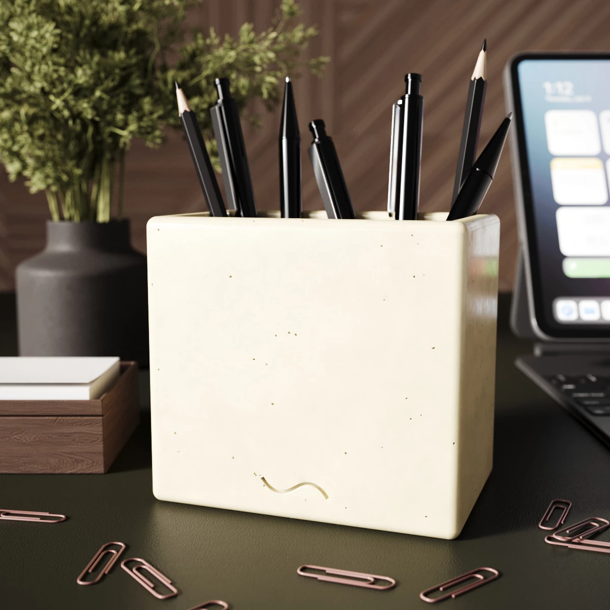 Наши двойные стаканы для ручек и карандашей — это продуманный до мелочей аксессуар из архитектурного бетона, к преимуществам которого можно отнести: