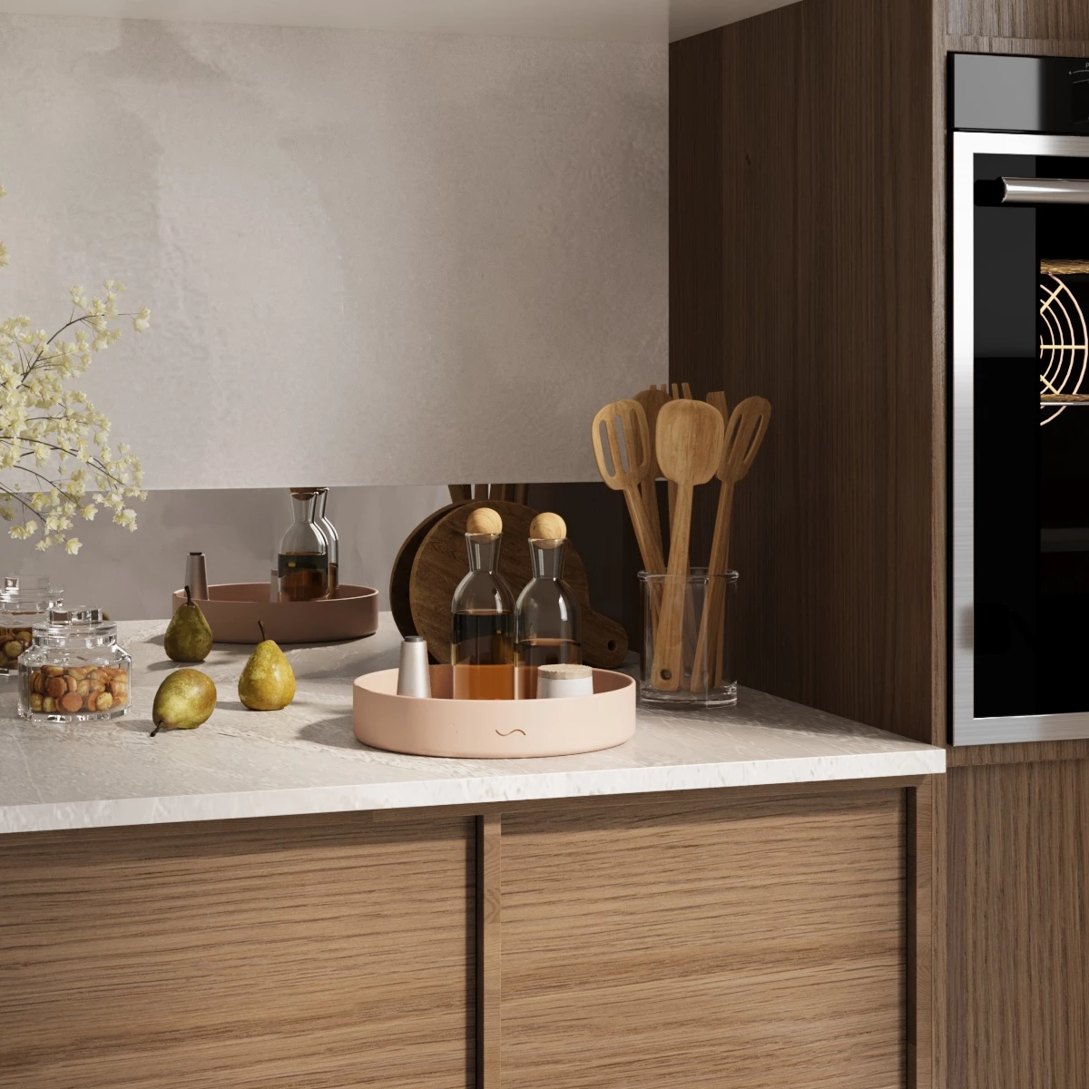 Благодаря высоким бортикам поднос можно использовать как подставку под баночки для специй, емкости для масла для организации пространства кухни.