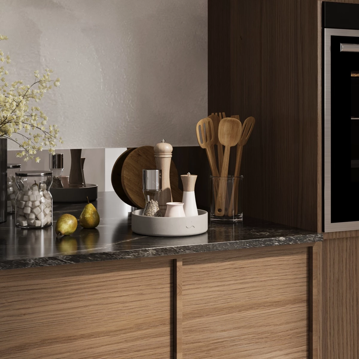 Благодаря высоким бортикам поднос можно использовать как подставку под баночки для специй, емкости для масла для организации пространства кухни.