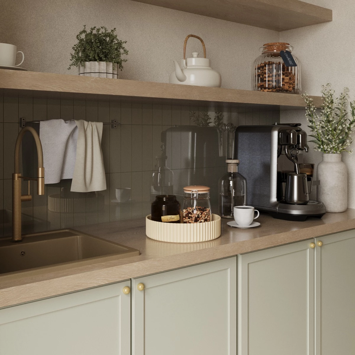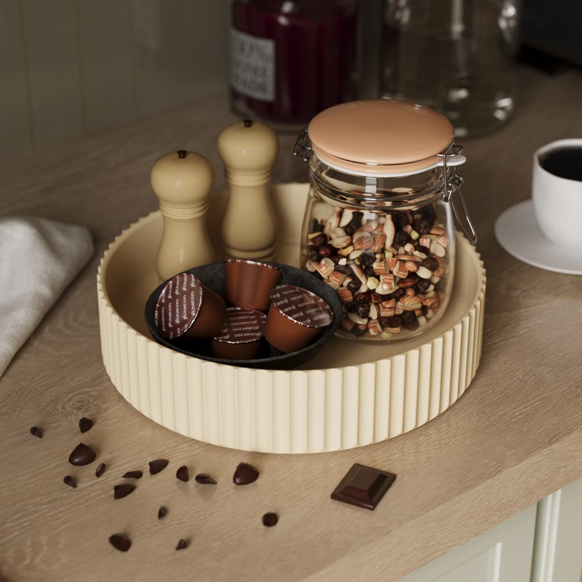 Благодаря высоким бортикам поднос можно использовать как подставку под баночки для специй, емкости для масла для организации пространства кухни.