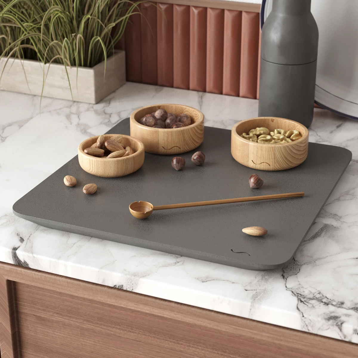 Блюдо изготовлено из архитектурного бетона высшего качества, что делает его невероятно прочным и долговечным. Вас не оставят равнодушными практичность и эргономика этого изделия. Помимо сервировки стола и красивой подачи, блюдо можно использовать в качестве подставки под горячее.