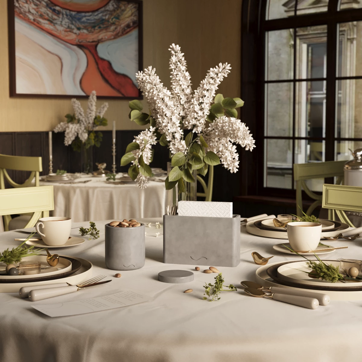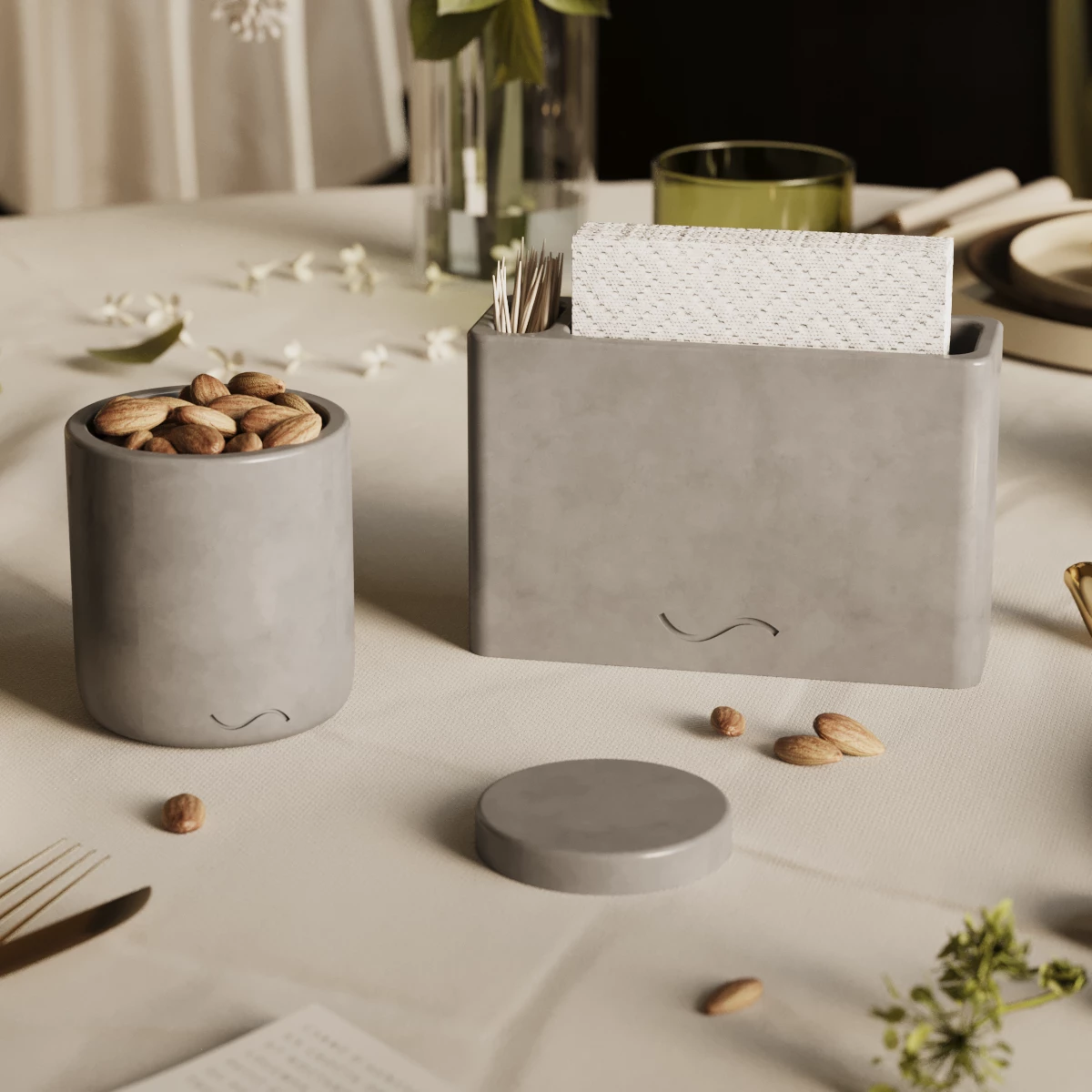 Набор Musko №23 - это идеальный дуэт стильных интерьерных аксессуаров, состоящий из салфетницы Lina и банки для хранения Astrid S.