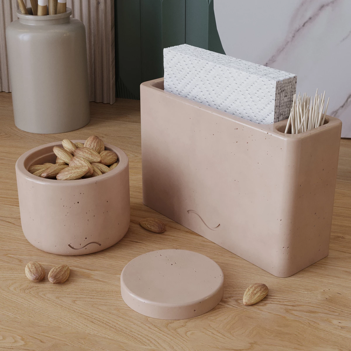 Набор Musko №22 - это идеальный дуэт стильных интерьерных аксессуаров, состоящий из салфетницы Lina и банки для хранения Astrid XS.