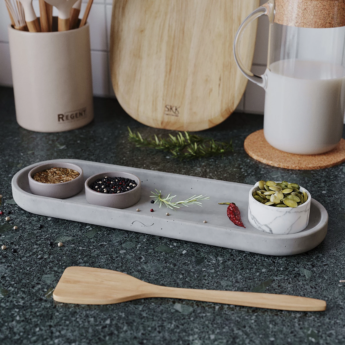 Astrid M - универсальный кухонный поднос, изготовленный вручную из особо прочного бетона.