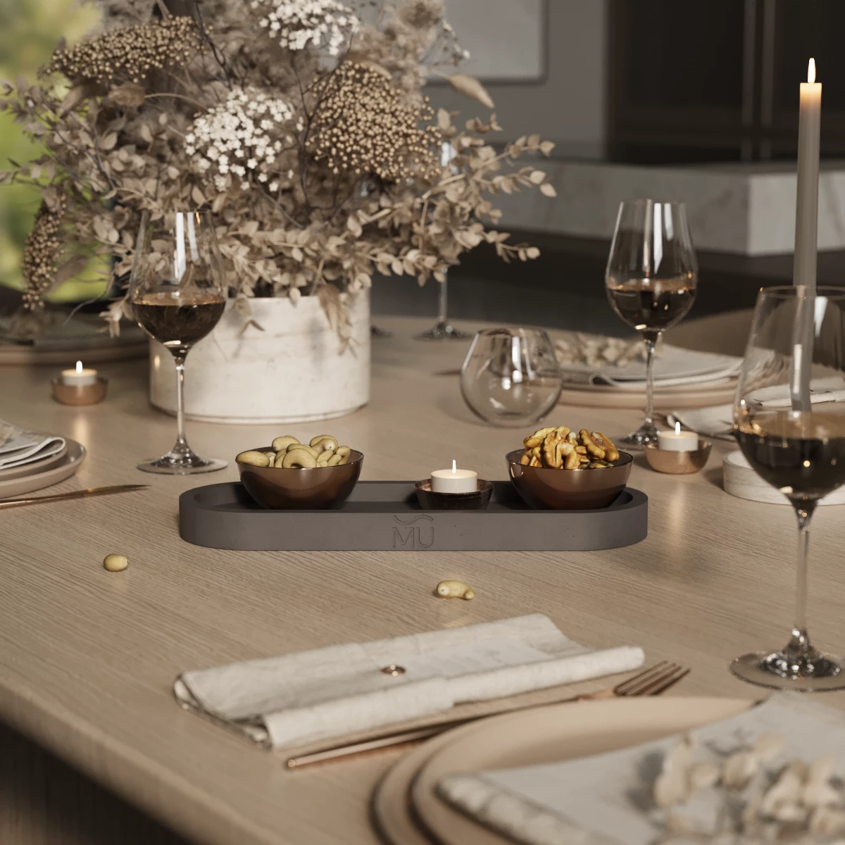 Поднос из бетона Lora M может служить теплым и функциональным предметом декора Вашего дома, долговечным и практичным элементом в интерьере ресторана или столовой и элегантным и необычным подарком для любимых и близких людей - решать Вам!