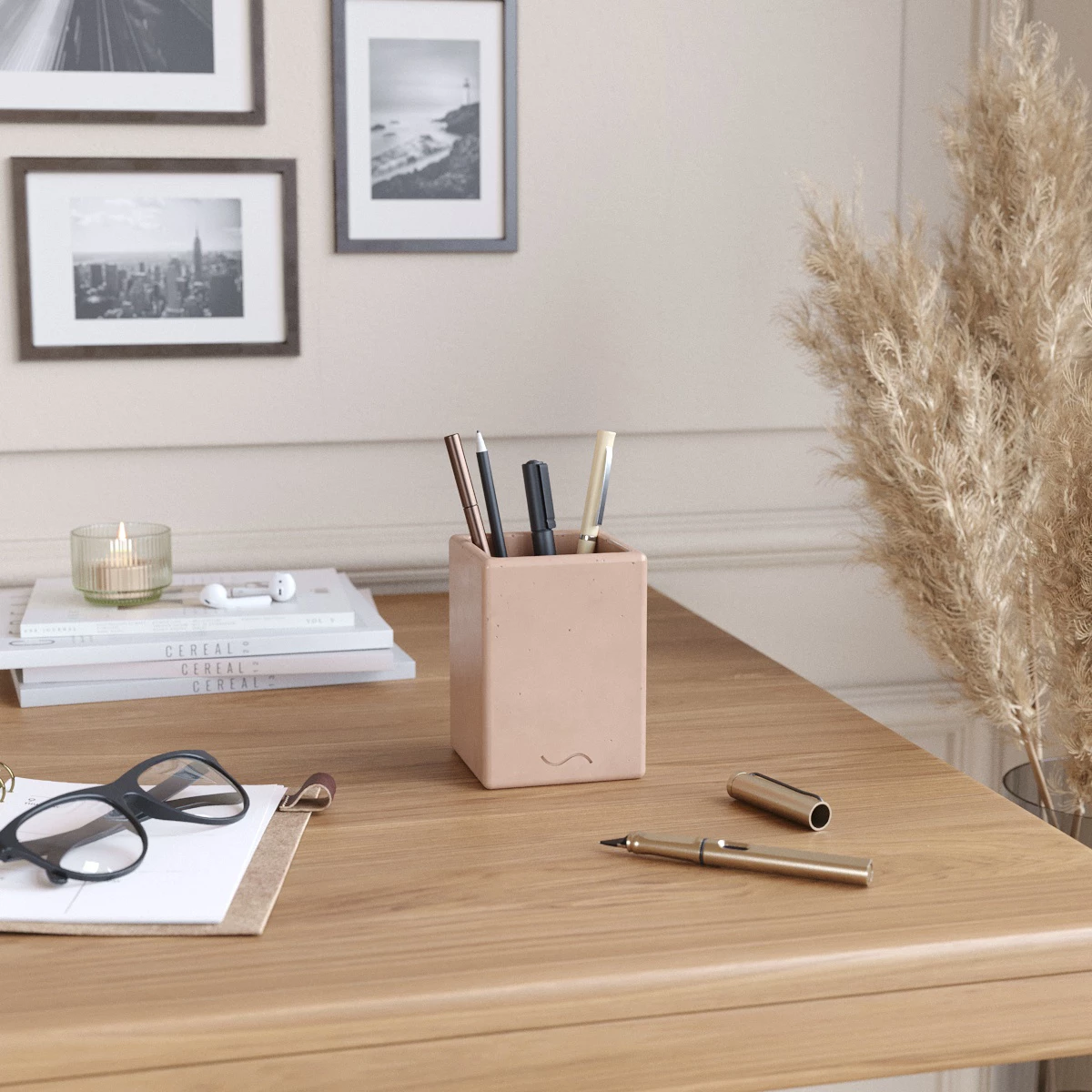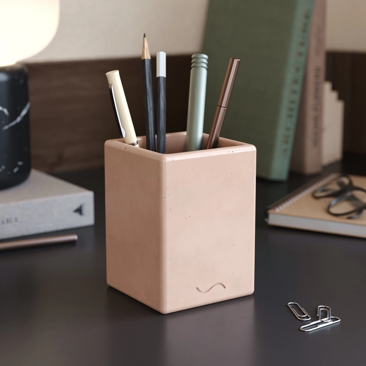 Декоративный органайзер Emily - это лаконичный и стильный интерьерный аксессуар, изготовленный вручную из архитектурного бетона. Он отлично подойдет для хранения канцелярский принадлежностей и организует порядок на вашем столе.