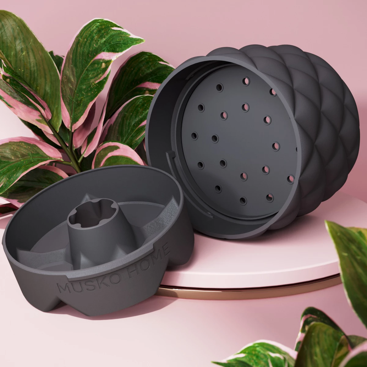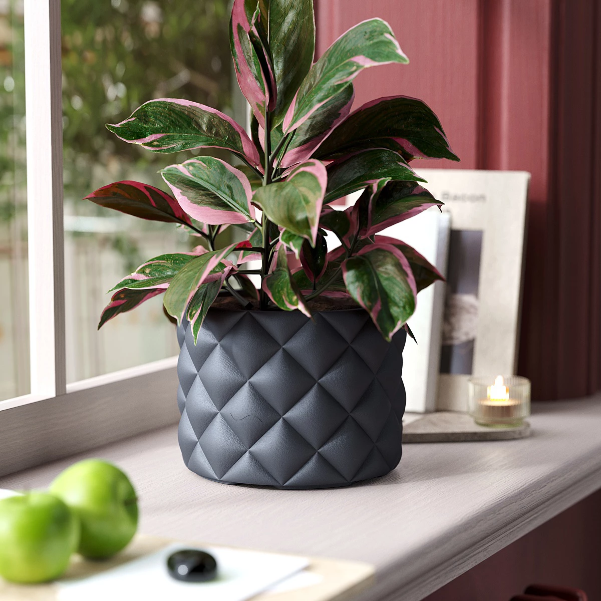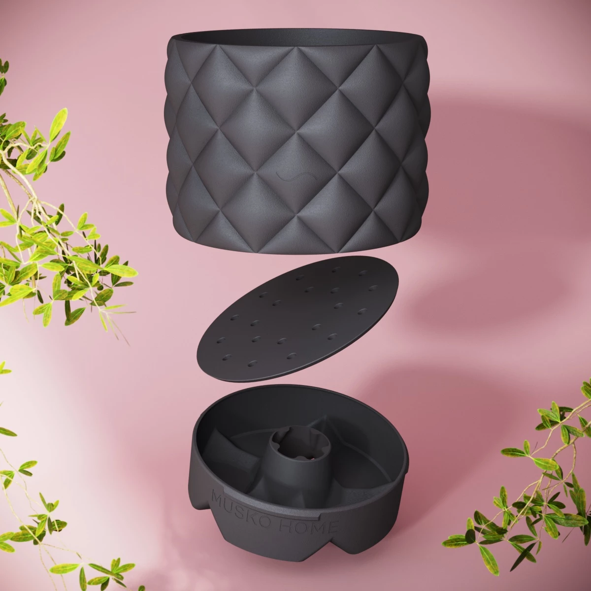 Горшок Pillow объёмом 2 л изготовлен из премиального карбонового полимера, обладает невероятными прочностью, долговечностью и имеет приятную на ощупь рифлёную матовую текстуру.
