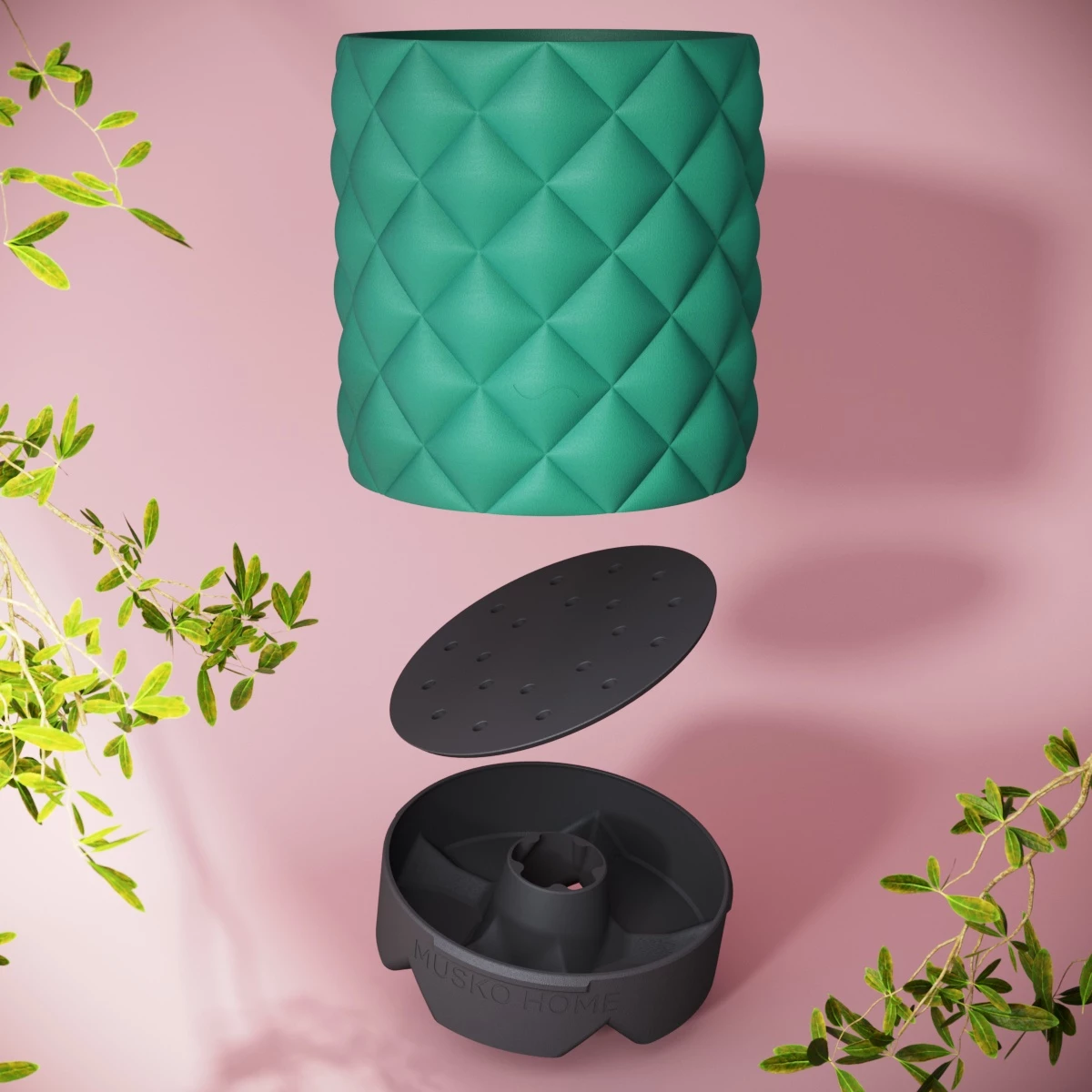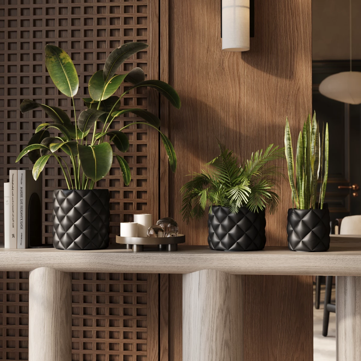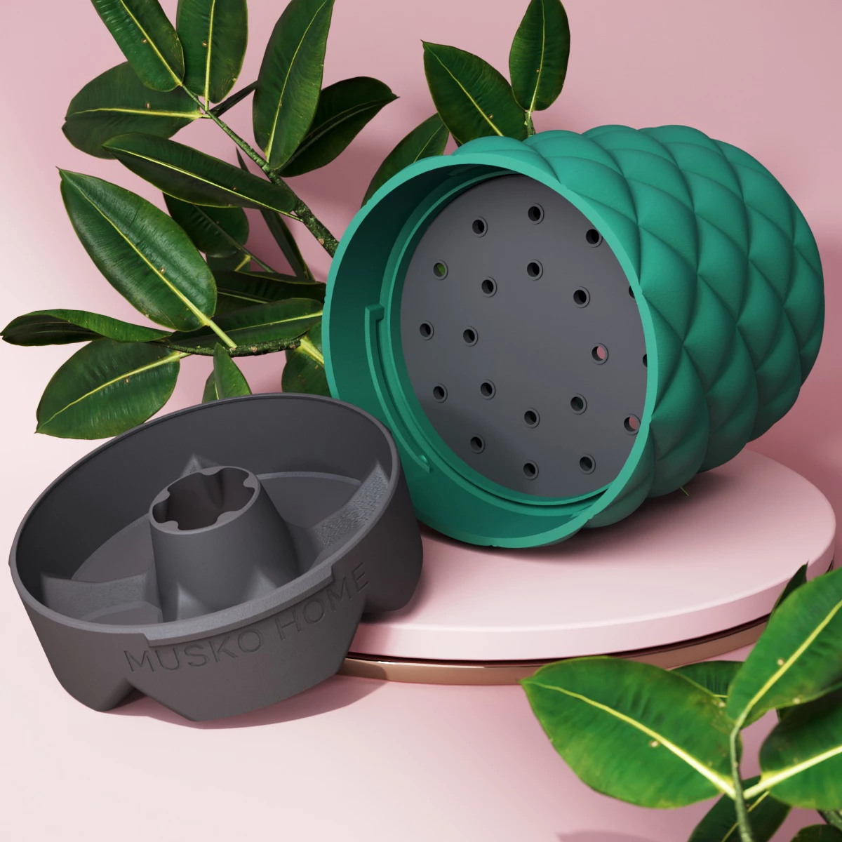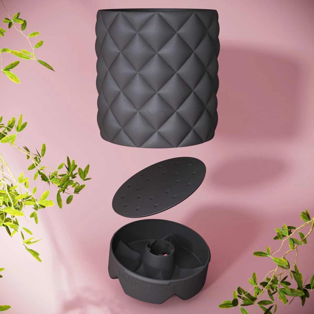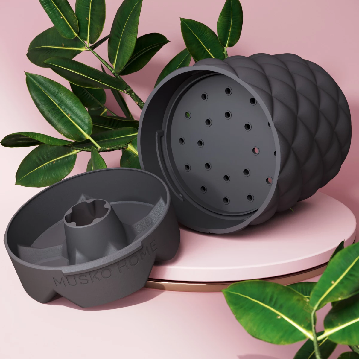 Горшок Pillow объёмом 3 л изготовлен из премиального карбонового полимера, обладает невероятными прочностью, долговечностью и имеет приятную на ощупь рифлёную матовую текстуру.