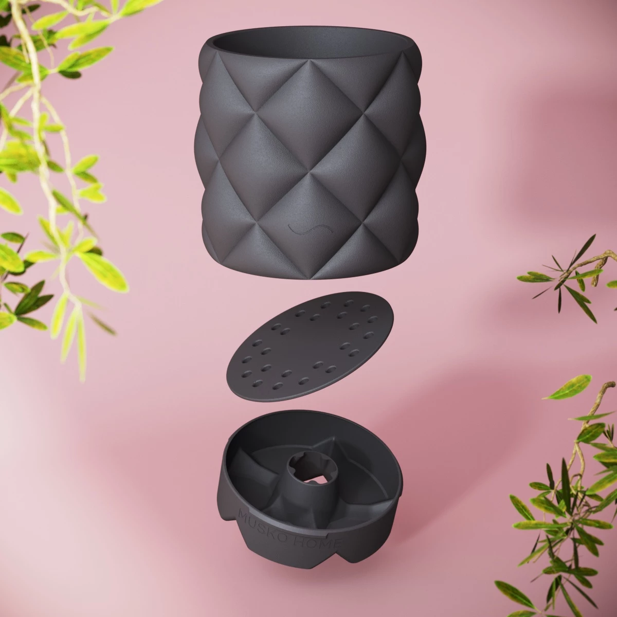 Горшок Pillow объёмом 0.5 л изготовлен из премиального карбонового полимера, обладает невероятными прочностью, долговечностью и имеет приятную на ощупь рифлёную матовую текстуру.
