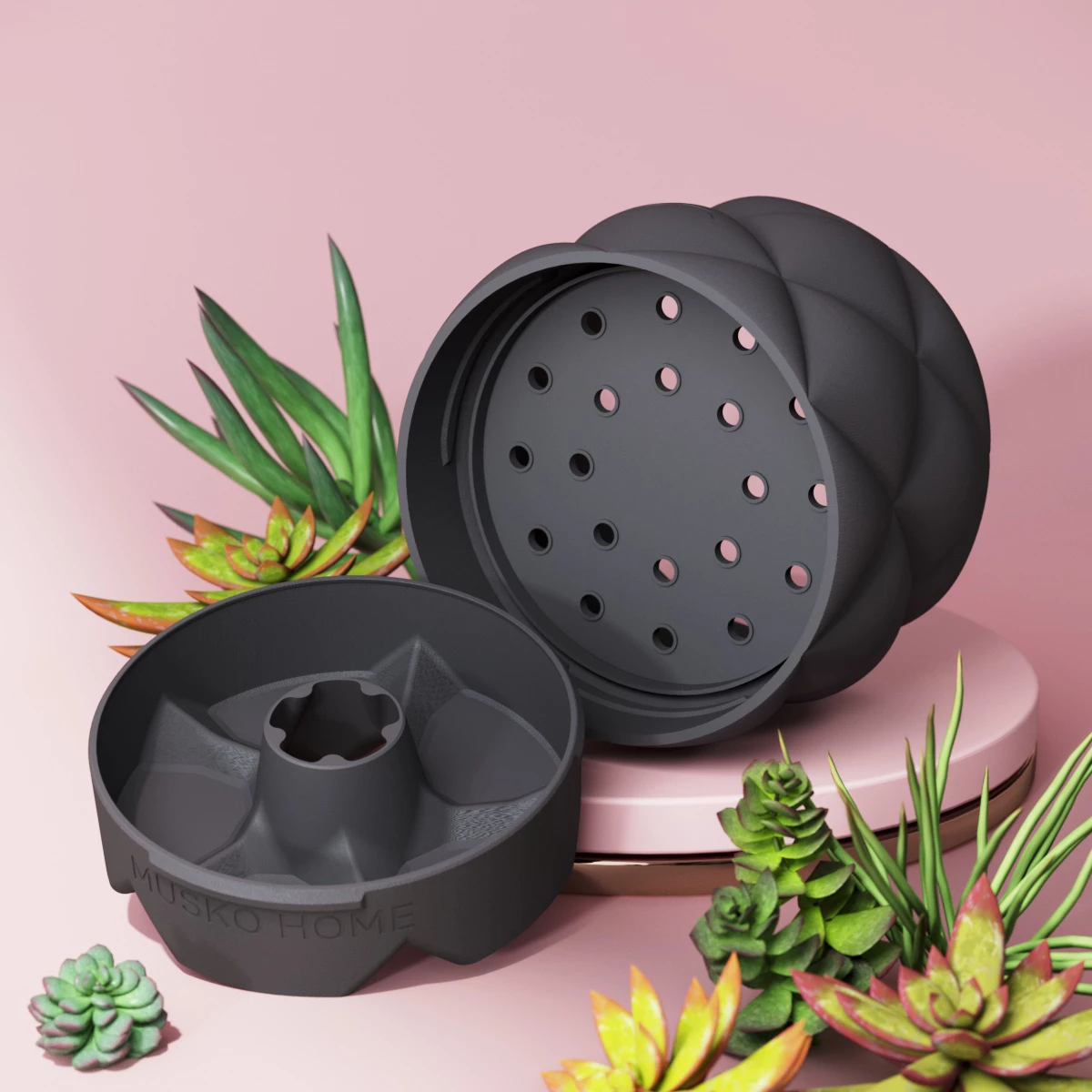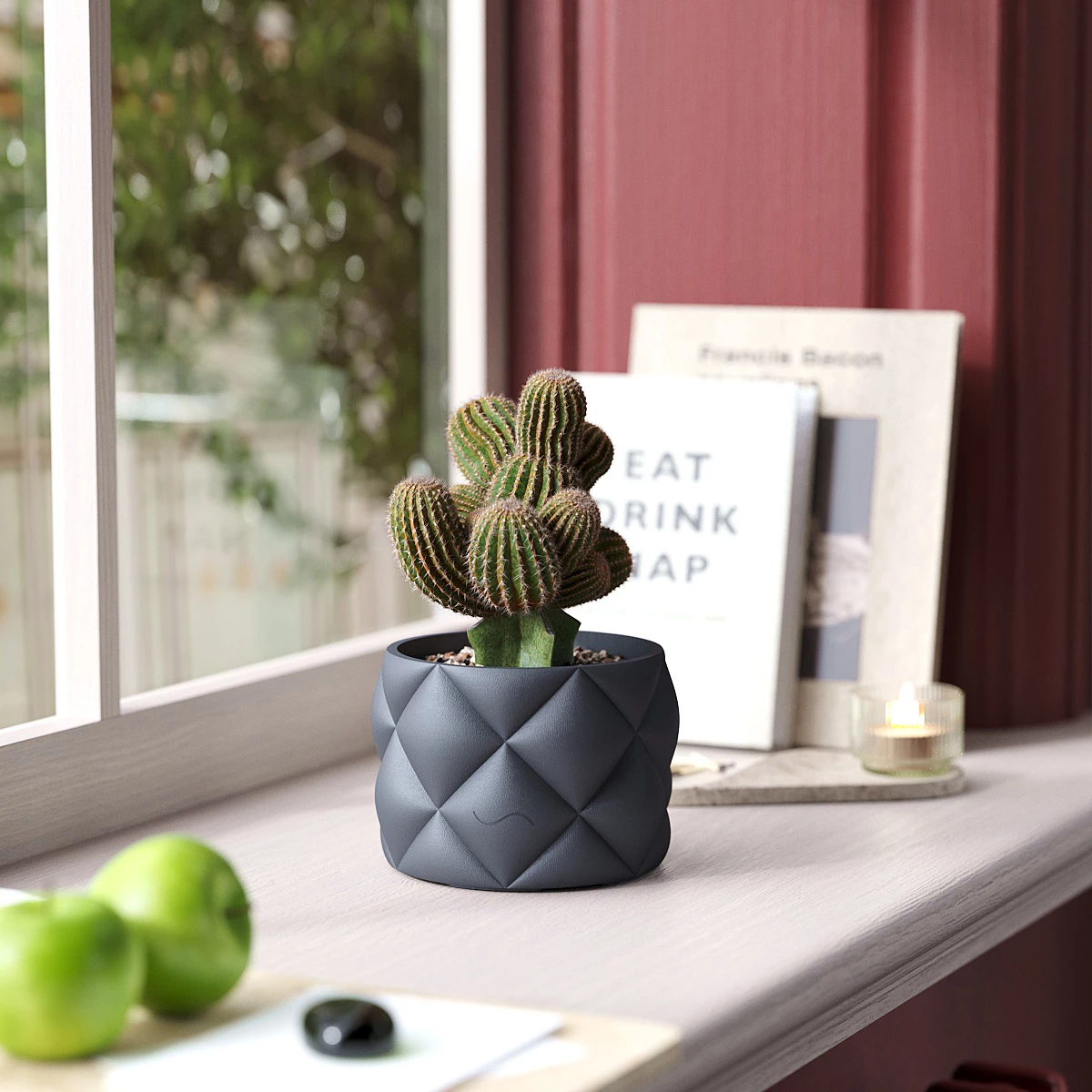 Горшок Pillow объёмом 0.65 л изготовлен из премиального карбонового полимера, обладает невероятными прочностью, долговечностью и имеет приятную на ощупь рифлёную матовую текстуру.