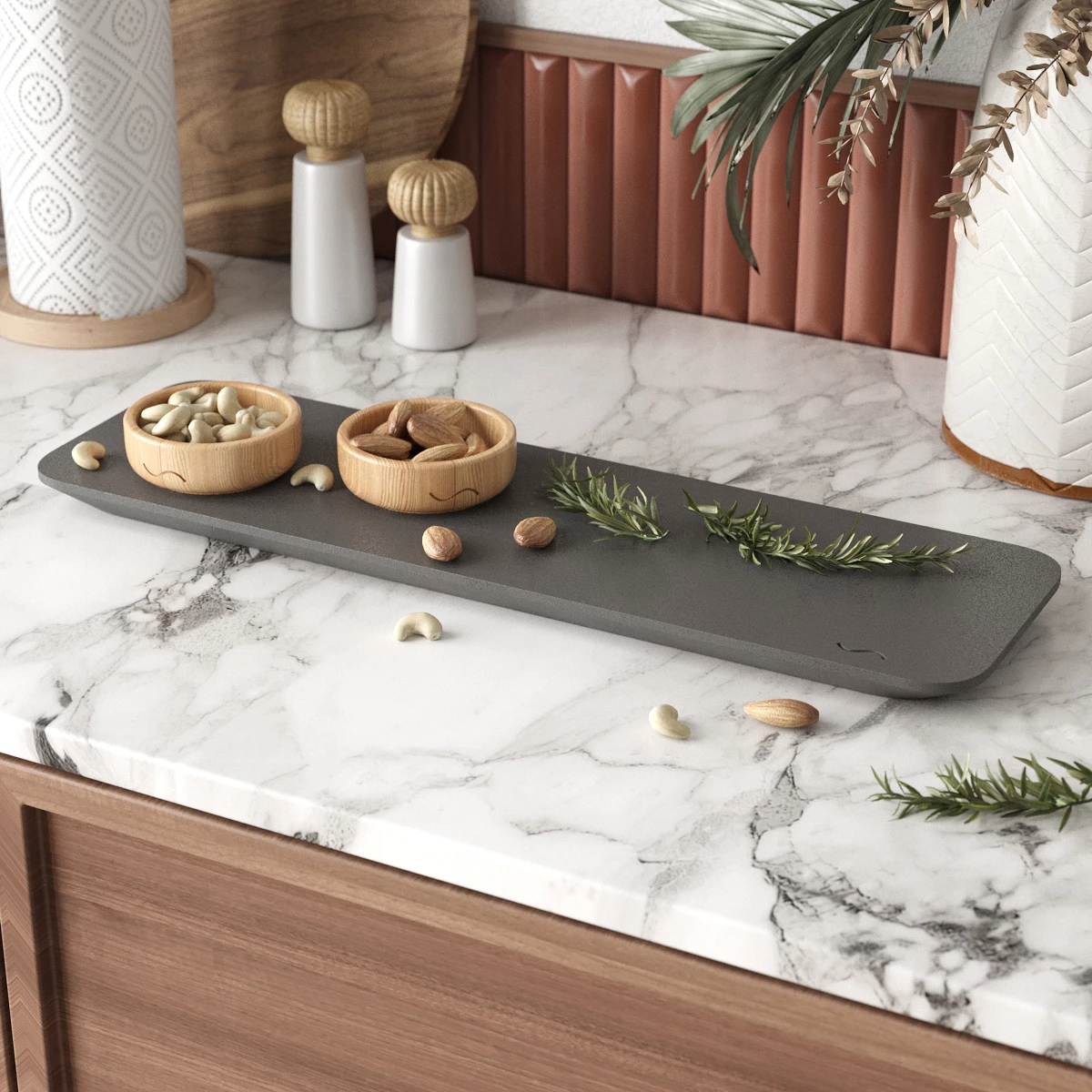 Блюдо изготовлено из архитектурного бетона высшего качества, что делает его невероятно прочным и долговечным. Вас не оставят равнодушными практичность и эргономика этого изделия. Помимо сервировки стола и красивой подачи, блюдо можно использовать в качестве подставки под горячее.
