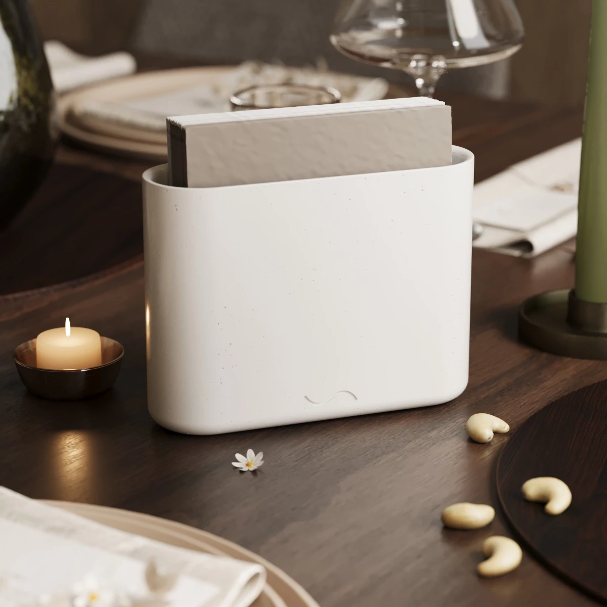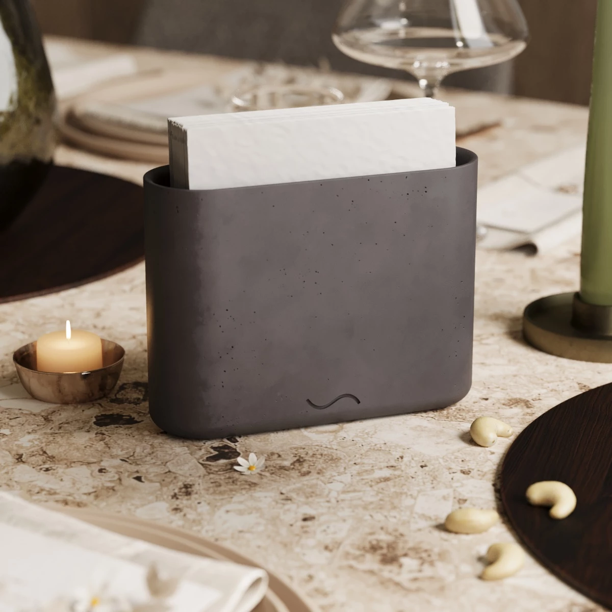 Салфетница Astrid - функциональный предмет интерьера. Изделие изготовлено вручную из архитектурного бетона и покрыто двухкомпонентным лаком. Ввиду особенностей материала каждое изделие имеет свою собственную неповторимую фактуру.