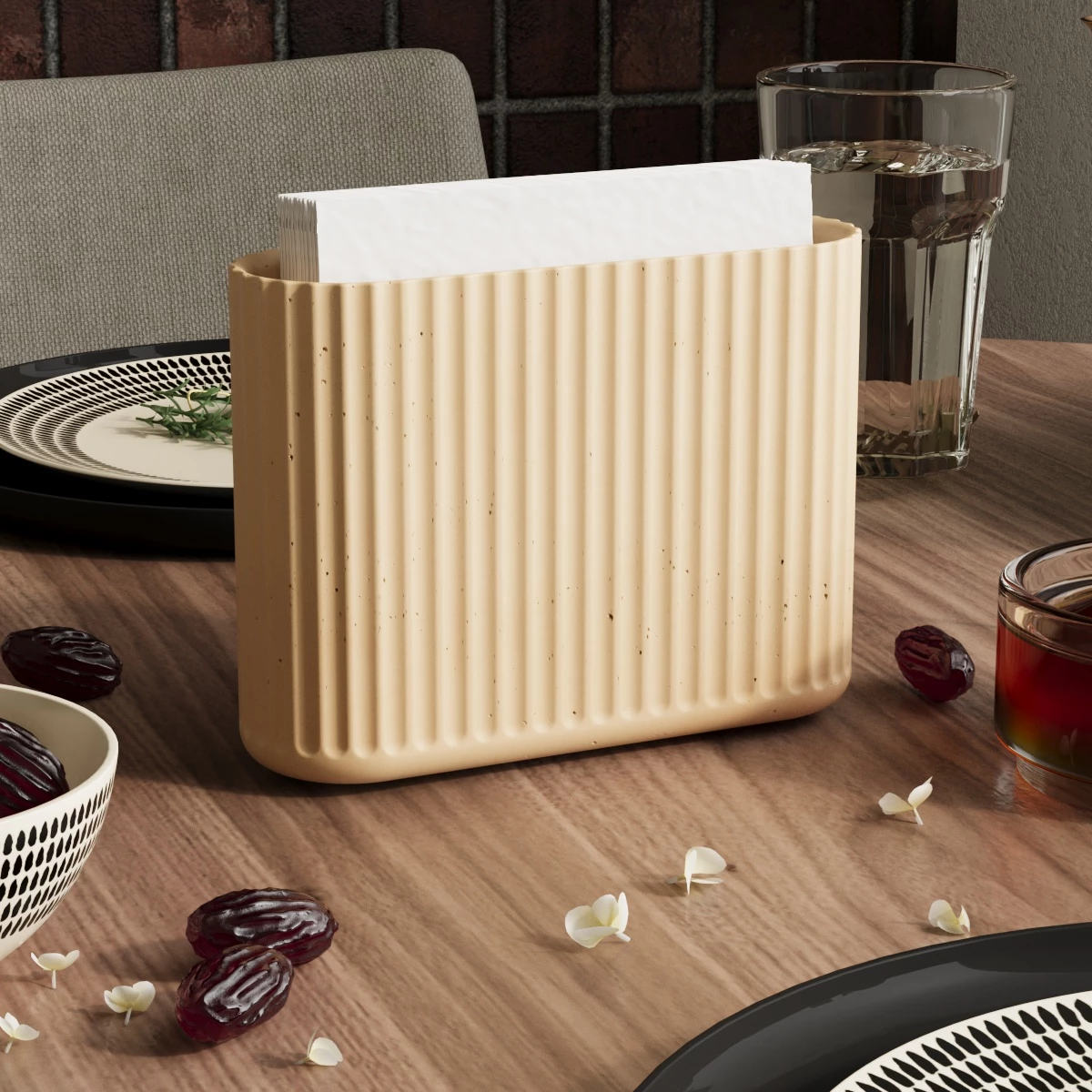 Салфетница Chloe - функциональный предмет интерьера. Изделие изготовлено вручную из архитектурного бетона и покрыто двухкомпонентным лаком. Ввиду особенностей материала каждое изделие имеет свою собственную неповторимую фактуру.