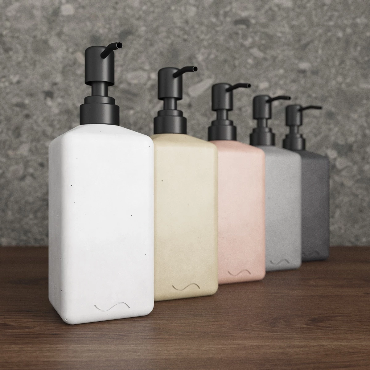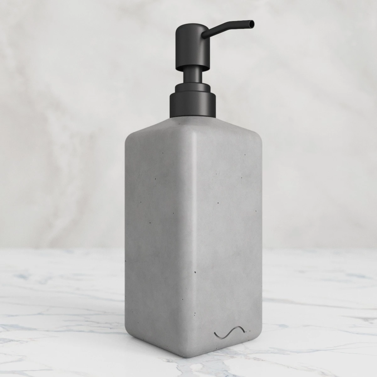 Корпус дозаторов изготовлен из декоративного бетона, а помпа - из металла. Внутри находится ёмкость из прочного пластика.