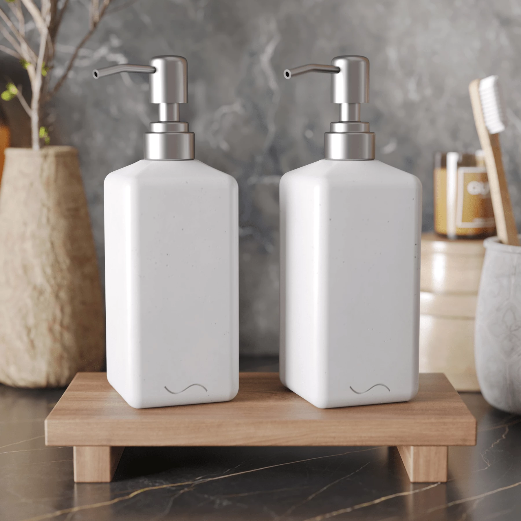 Набор дозаторов Emily Slim - комплект из двух удобных функциональных аксессуаров для ванной комнаты и кухни. Изделия можно использовать для хранения жидкого мыла, шампуня, бальзама для волос или моющих средств.