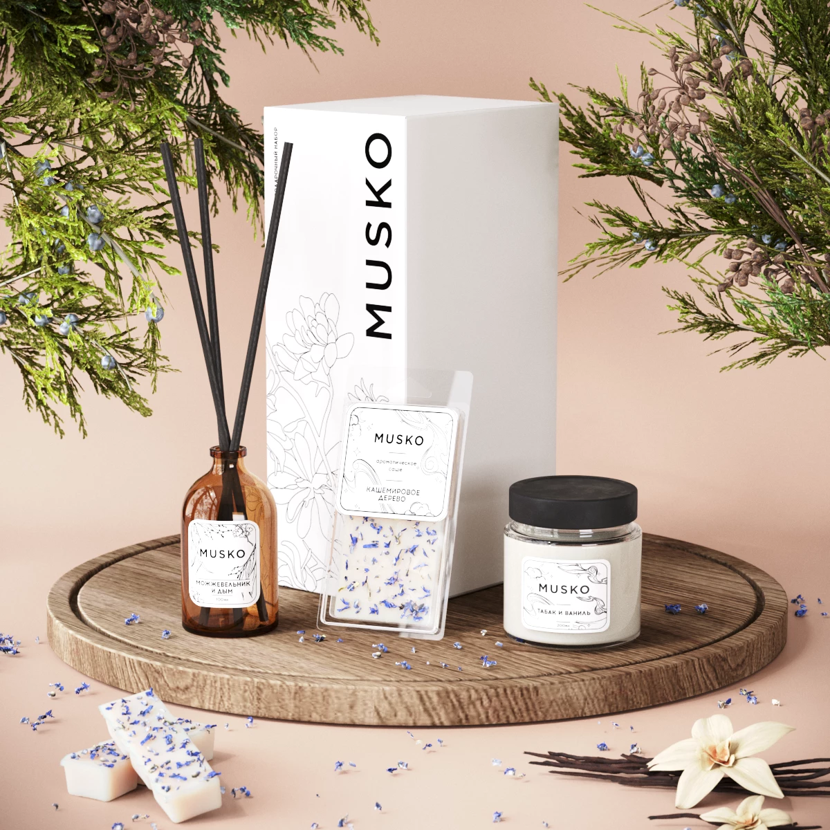 Подарочный набор от MUSKO HOME - идеальный подарок для тех, кто предпочитает необычные ароматы и любит создавать уют и приятную атмосферу в доме.