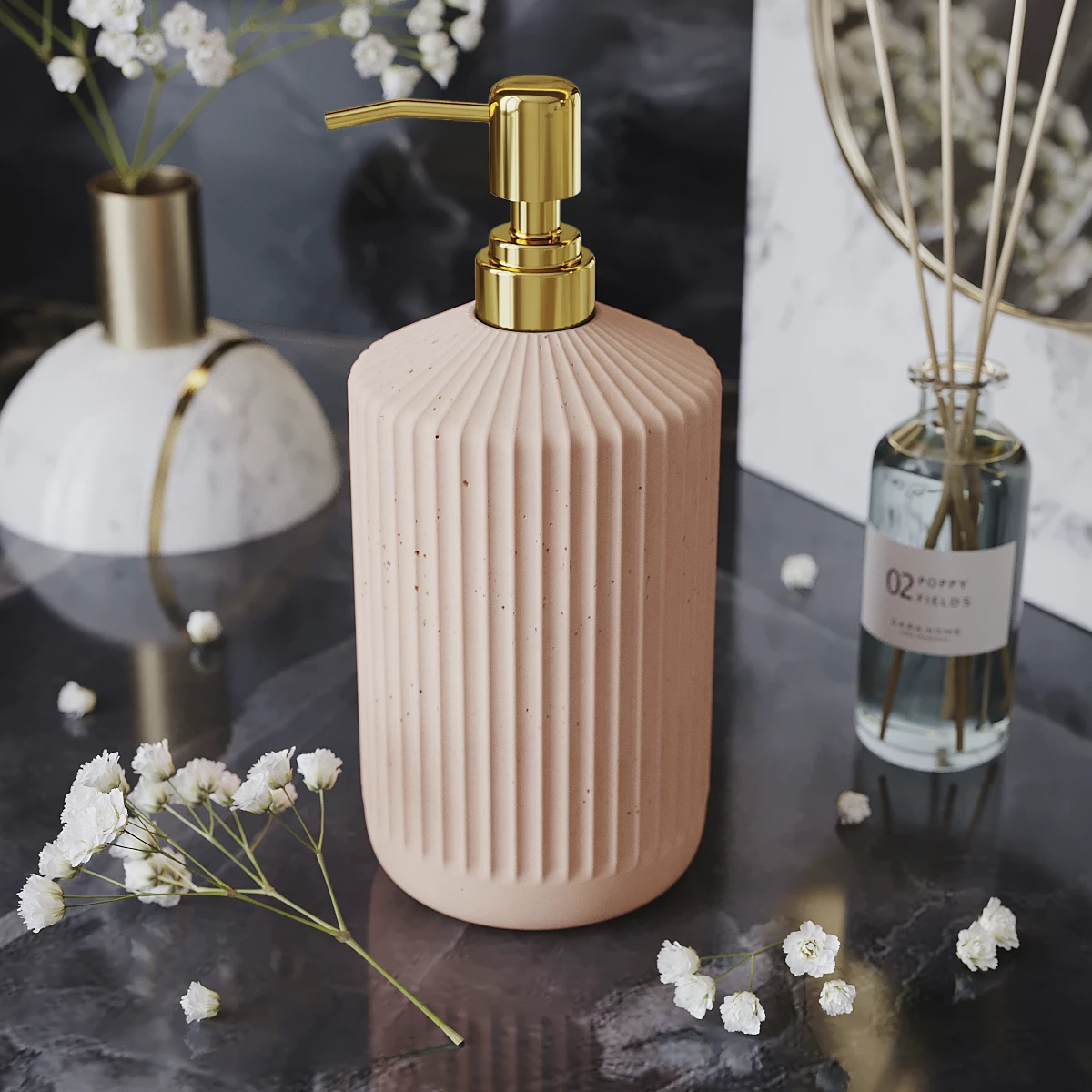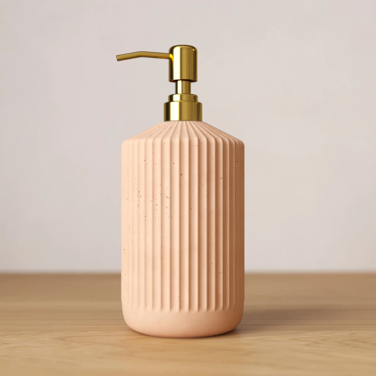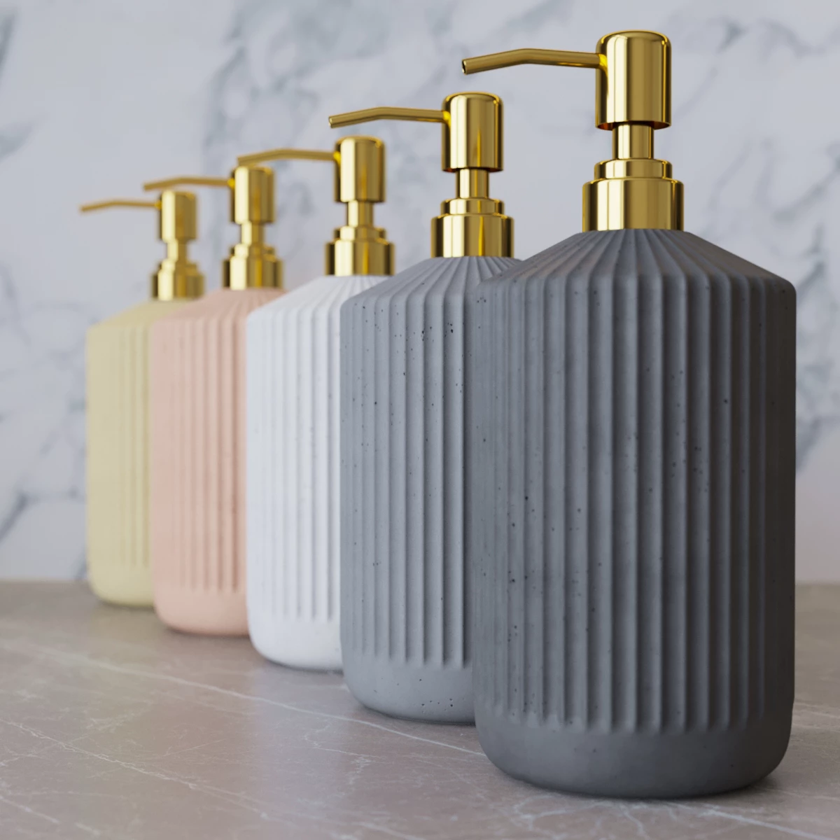 Корпус дозатора изготовлен из декоративного бетона, а помпа - из металла. Внутри дозатора находится емкость из прочного пластика.