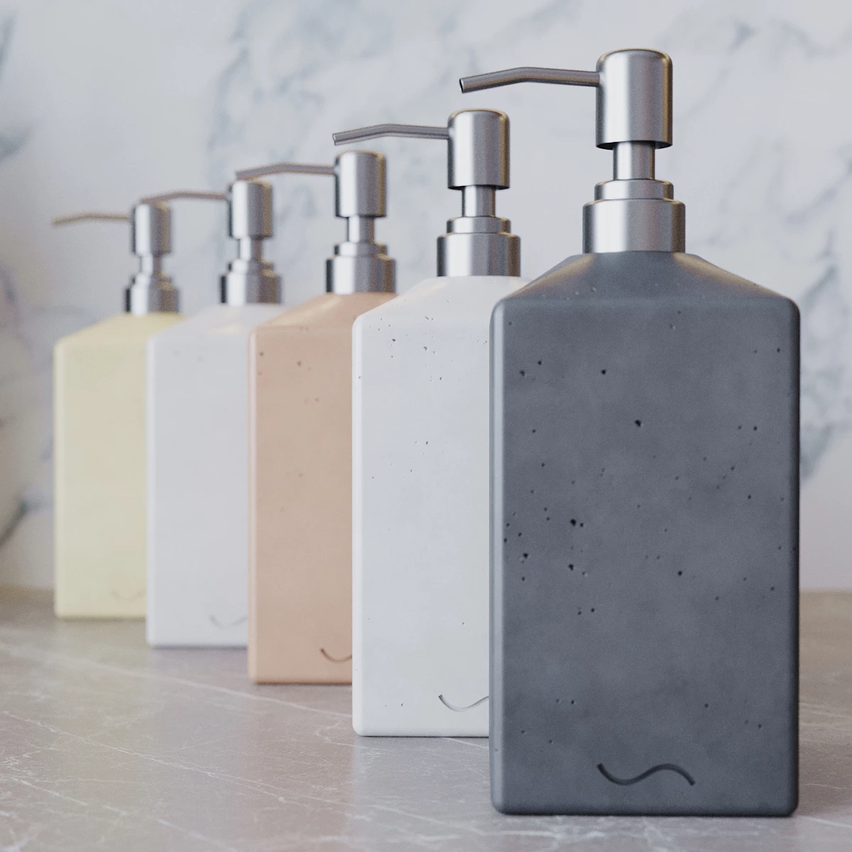 Изделие обработано защитной пропиткой, защищающей бетонную текстуру от воды и грязи. Жидкое мыло или моющее средство наливается в пластиковую емкость, находящуюся внутри.