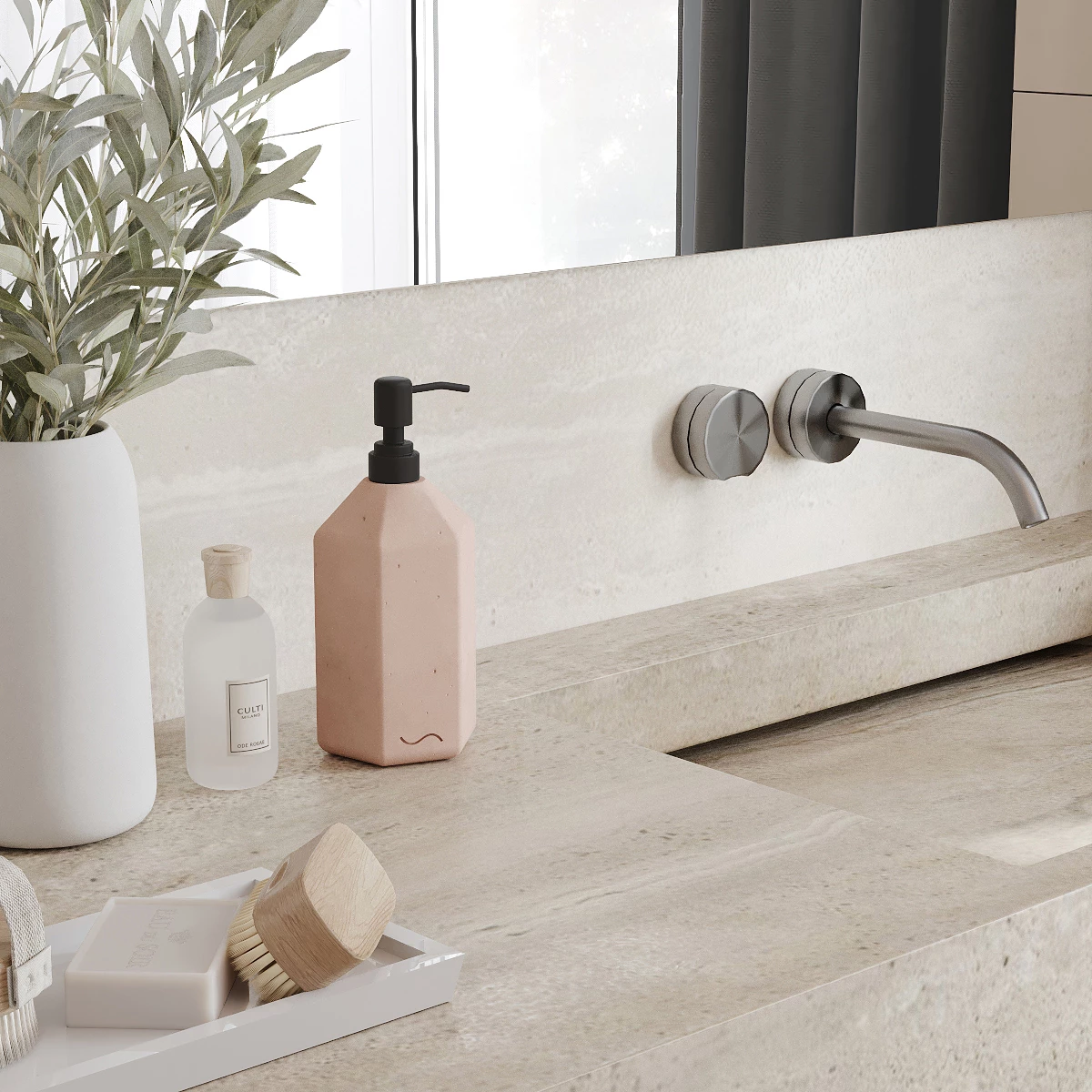 Дозатор обработан защитной пропиткой (матовым или глянцевым лаком), защищающей бетонную текстуру от воды и грязи.