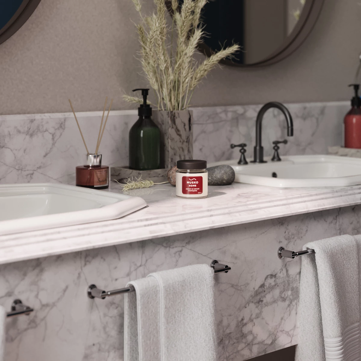 Свеча Carnel от бренда MUSKO HOME - изысканный аксессуар, который привнесёт в Ваш интерьер нотки утонченности и стиля.