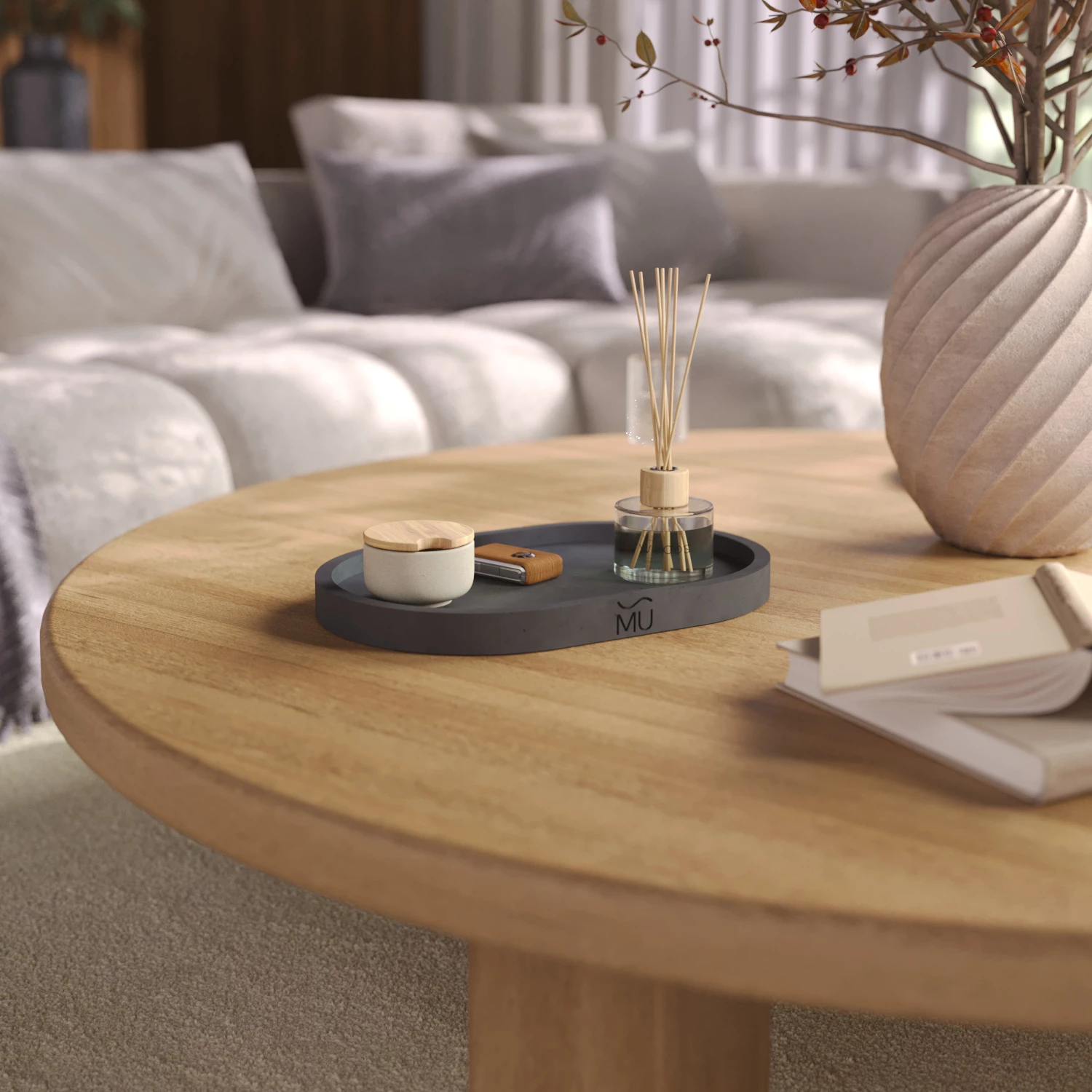 Lora - универсальный интерьерный поднос, изготовленный вручную из особо прочного бетона.