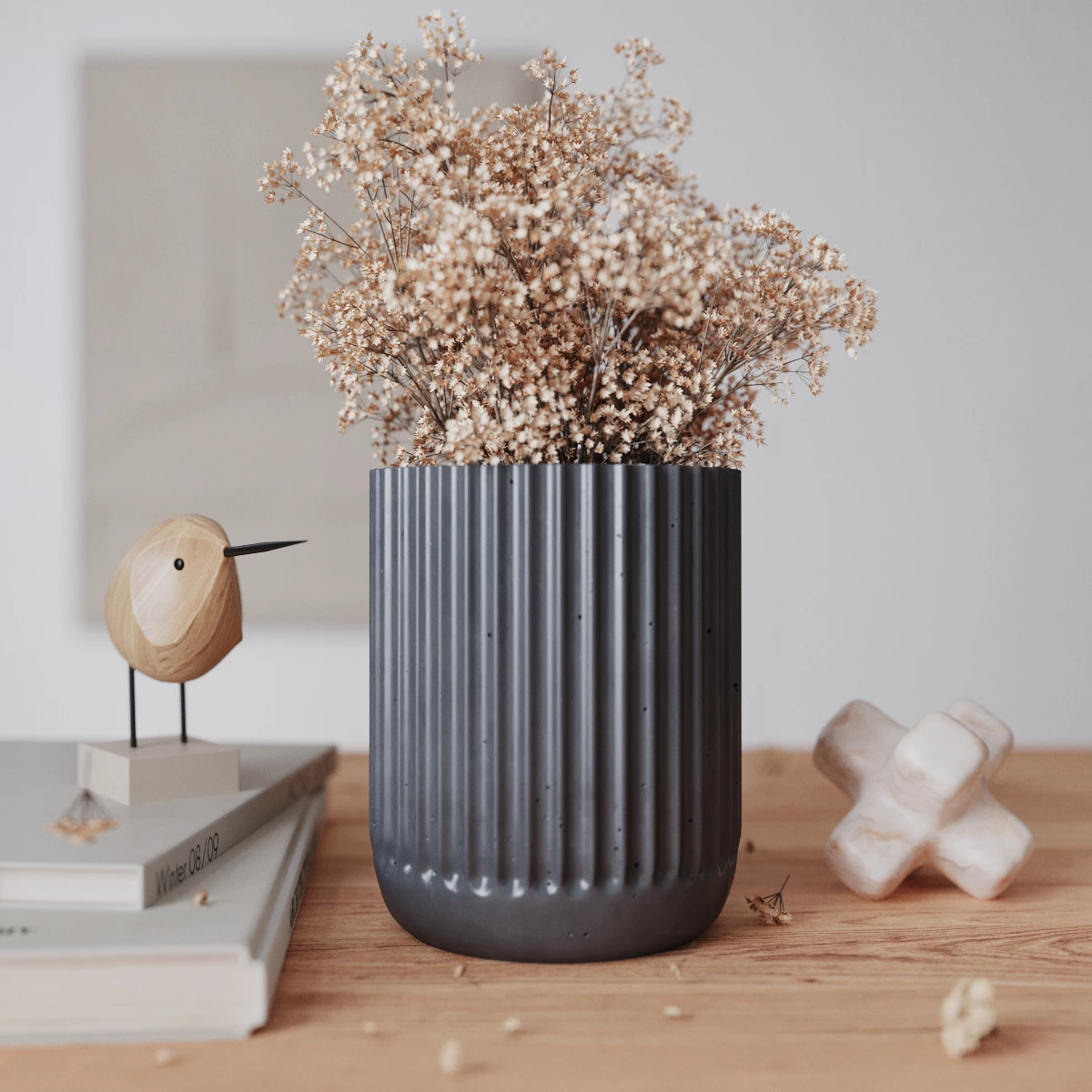 Chloe S - интерьерная ваза из бетона для сухоцветов, изготовленная вручную из особо прочного бетона. Изделие обработано глянцевым лаком, защищающим от воды и грязи.