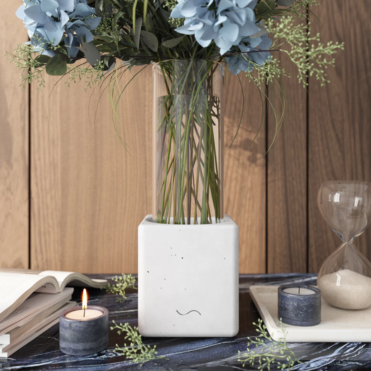 Декоративная ваза Ruby — это дуэт утонченного стекла и строгого бетона. Она идеально впишется в интерьер, выполненный в стиле сканди или минимализм.